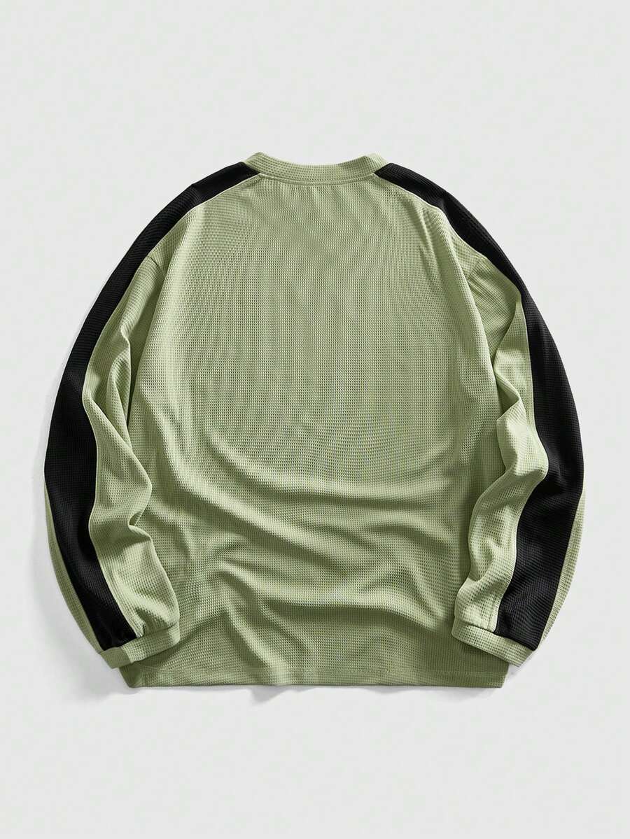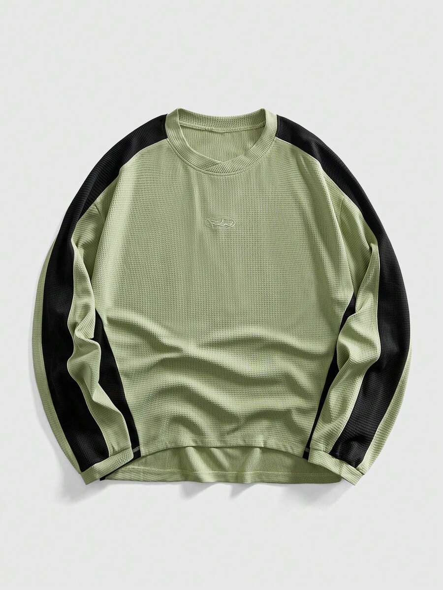 Street Life Sweat-shirt col rond décontracté pour hommes avec patchwork de couleurs contrastées