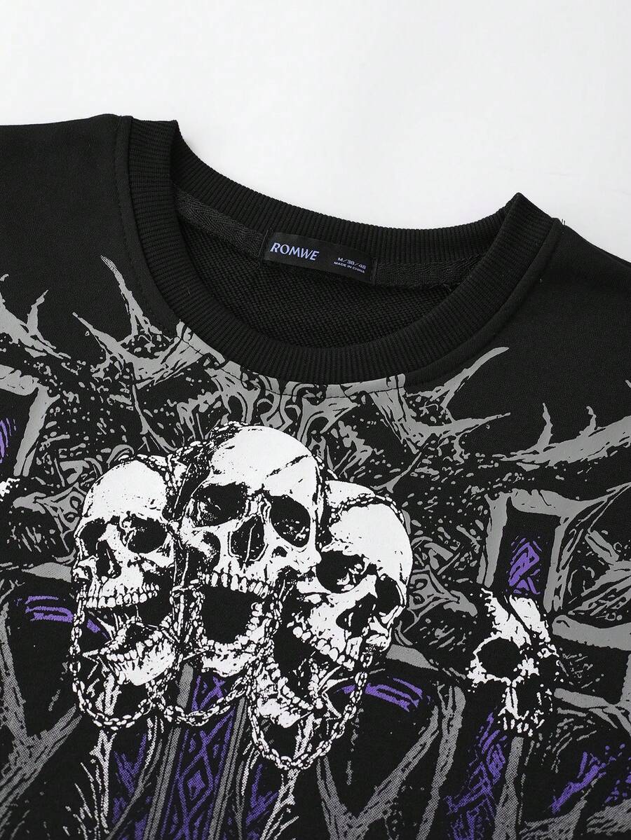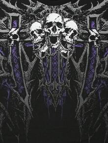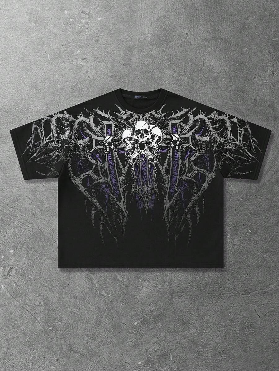 Street Life T-shirt à col ras-du-cou décontracté pour hommes avec imprimé tête de mort et croix, manches courtes