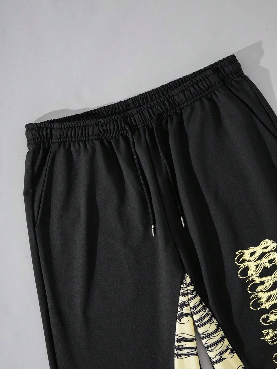 Street Life Pantalon de survêtement décontracté pour hommes avec cordon de serrage à la taille, imprimé lettres, automne