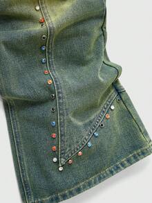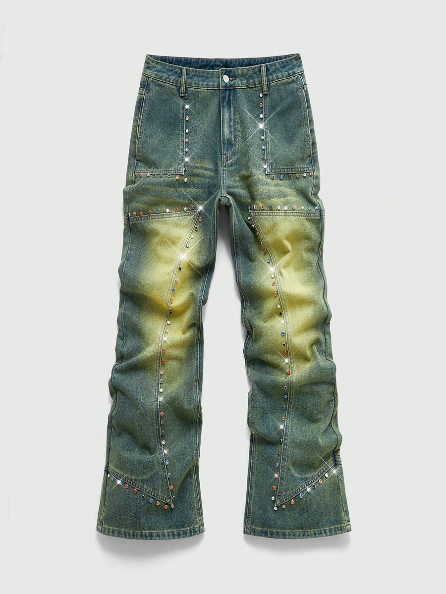 Street Life Jeans évasés décontracté de tous les jours pour hommes avec ornements de strass lavés