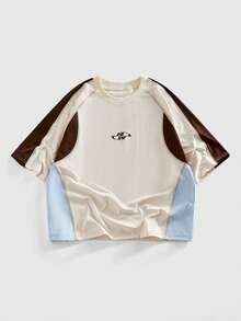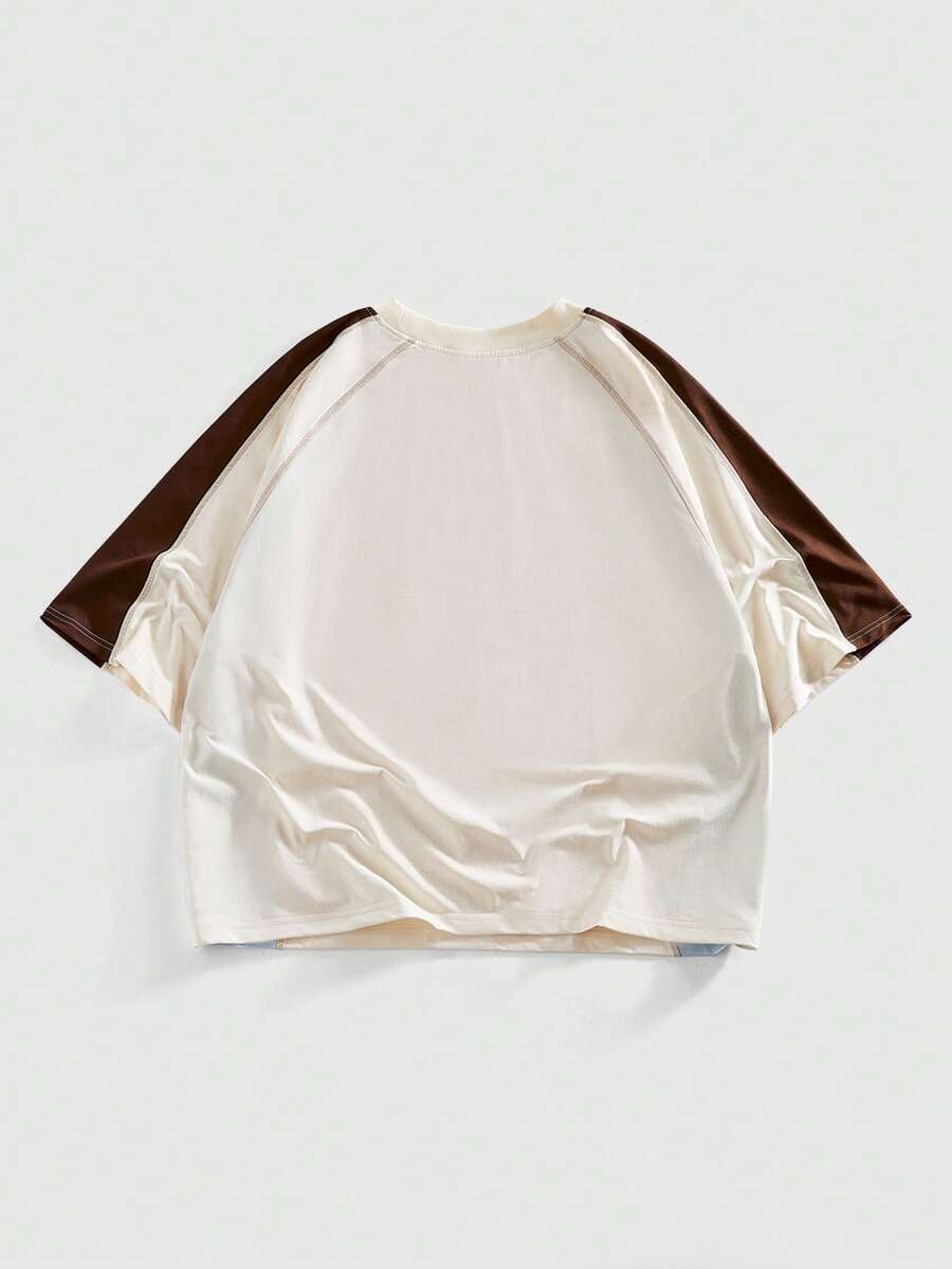 Street Life T-shirt ample à manches raglan imprimé lettres contrastées, mode de rue décontractée pour hommes, idéal pour les déplacements quotidiens, été