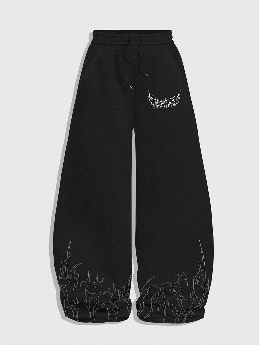 Street Life Pantalon décontracté pour hommes imprimé feu, pour un port quotidien, automne