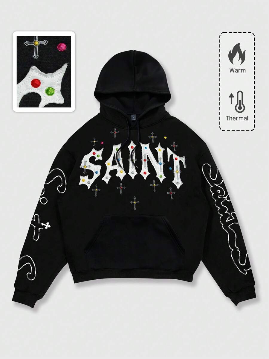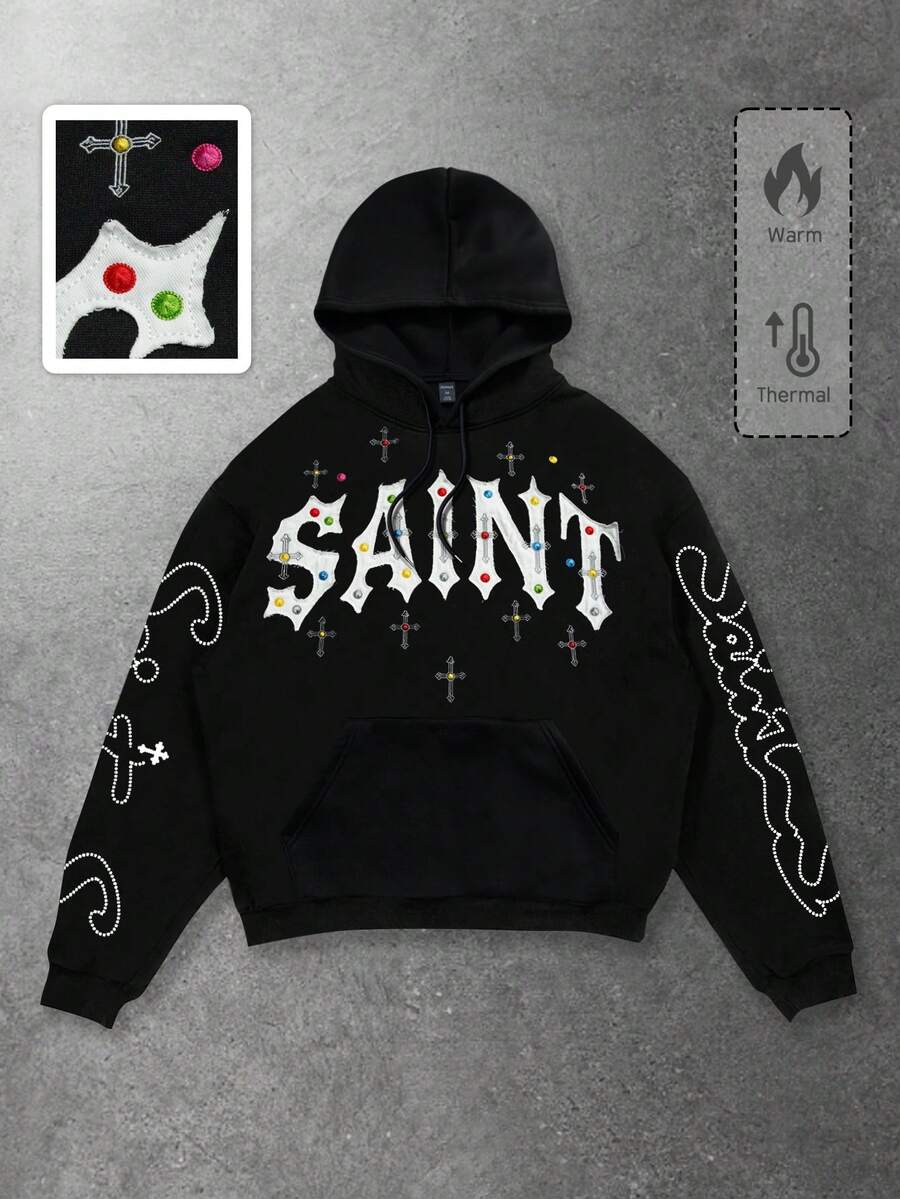 Street Life sweat-shirt à capuche casual pour hommes, style de rue punk avec broderie lourde, automne/hiver