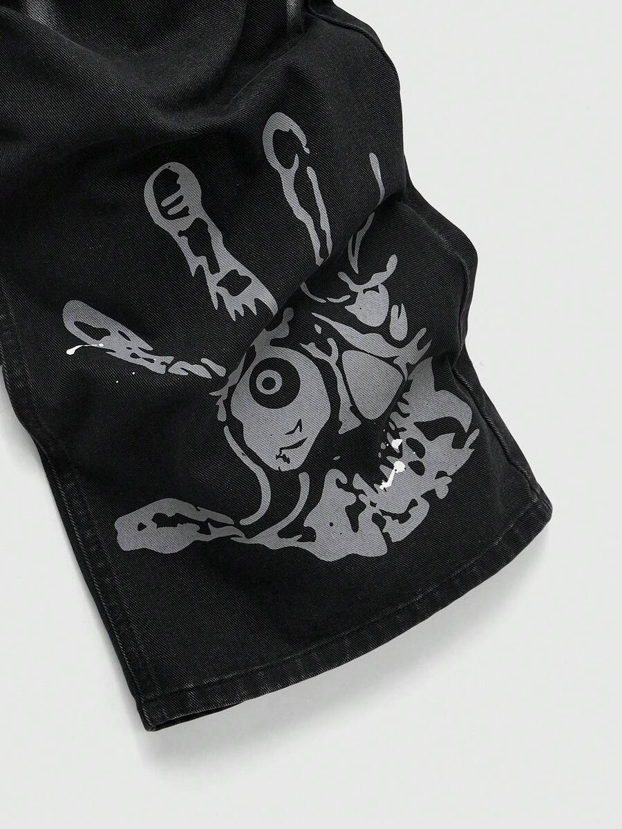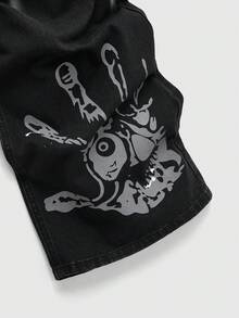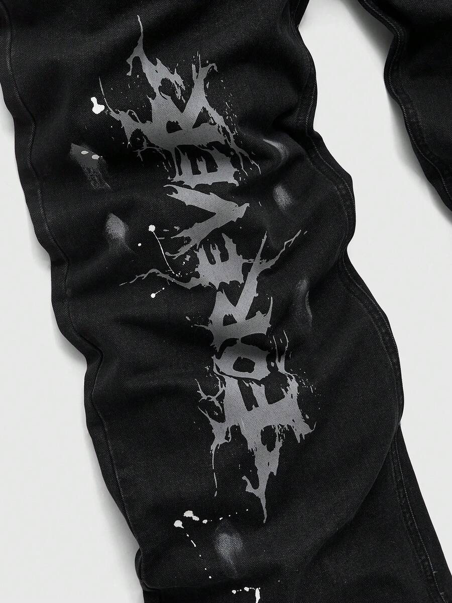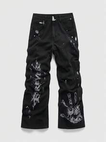 Street Life Jeans amples et décontractés pour hommes avec lettres et empreintes de main, automne