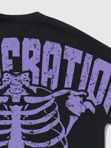 Street Life T-shirt à manches courtes décontracté pour hommes avec imprimé tête de mort et lettres, pour l'été