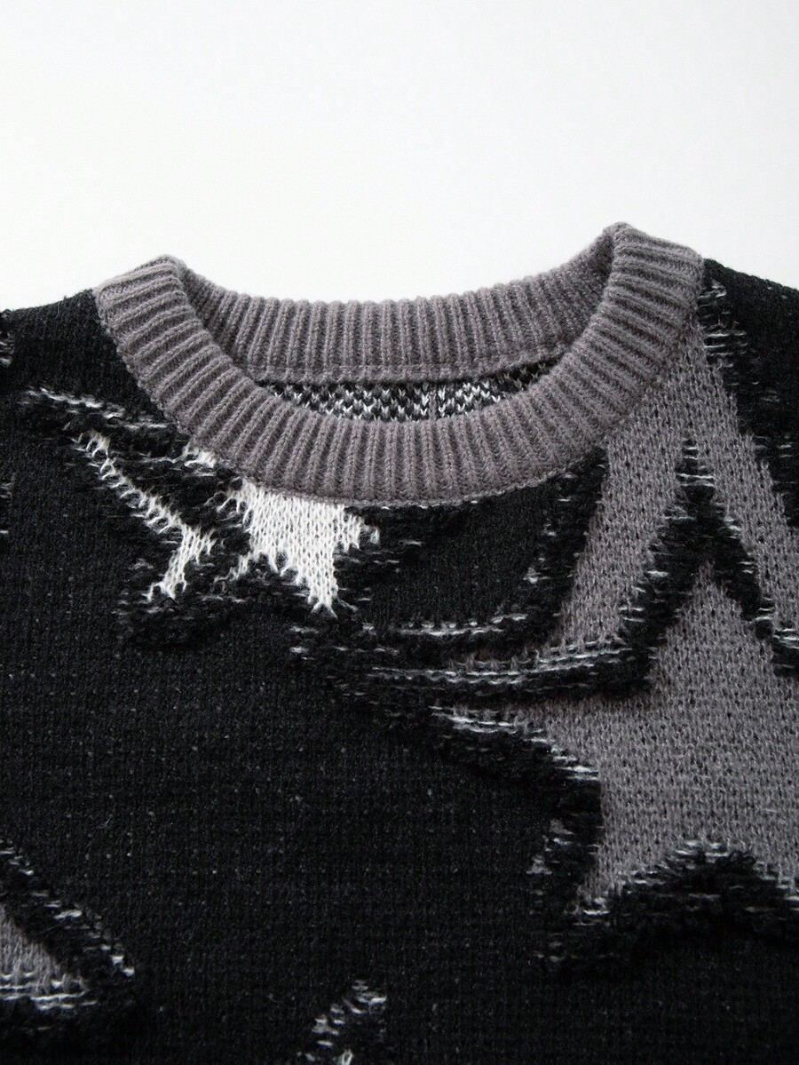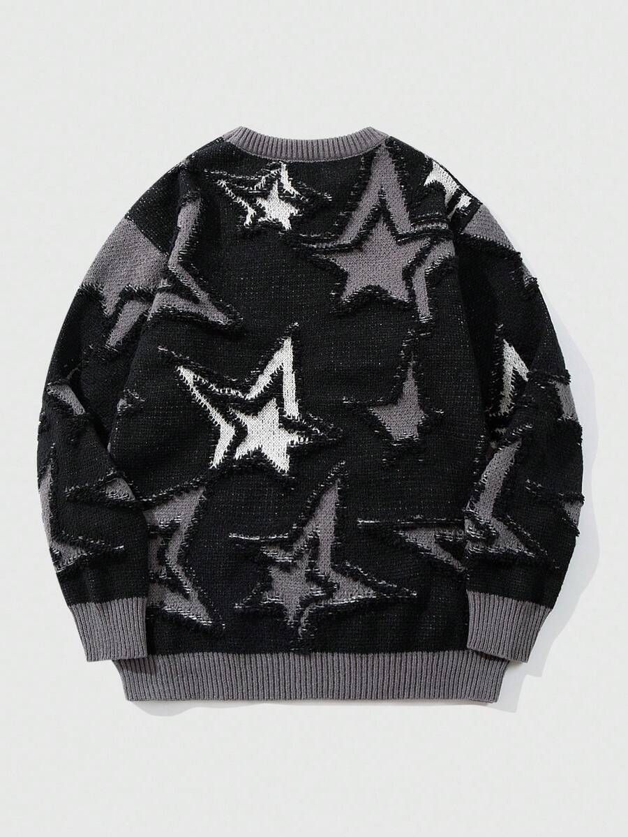 Street Life Pull ample à col rond avec motif étoile, style décontracté pour homme. Automne/Hiver