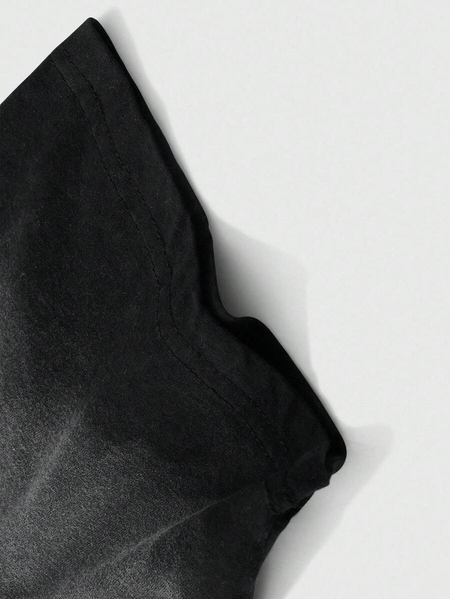 Casual T-shirt 100% coton d'été décontracté et pour hommes avec graphique de dessin animé dégradé lavé