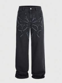 Street Life Jeans droits délavés et déchirés pour hommes, style décontracté