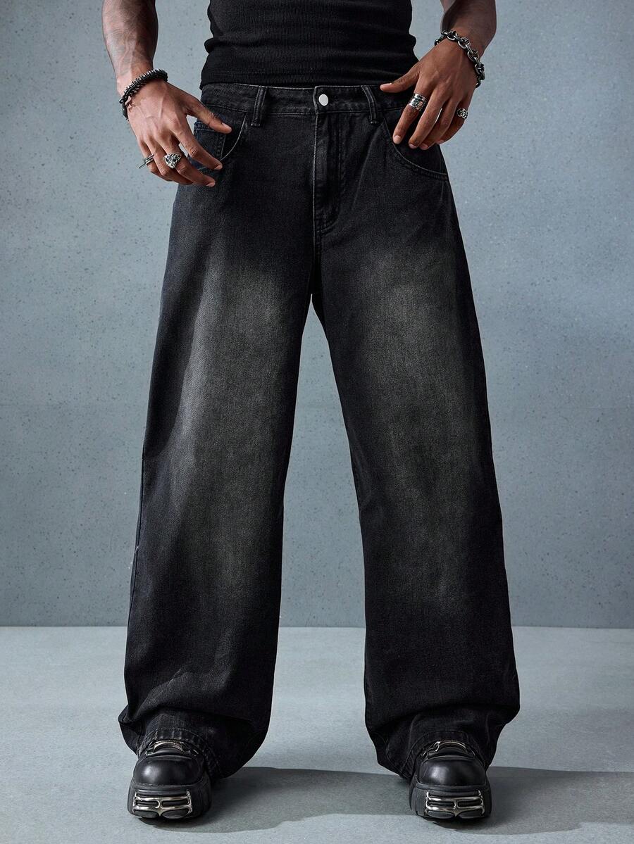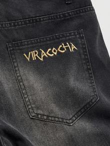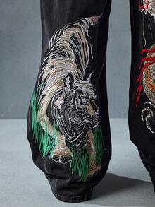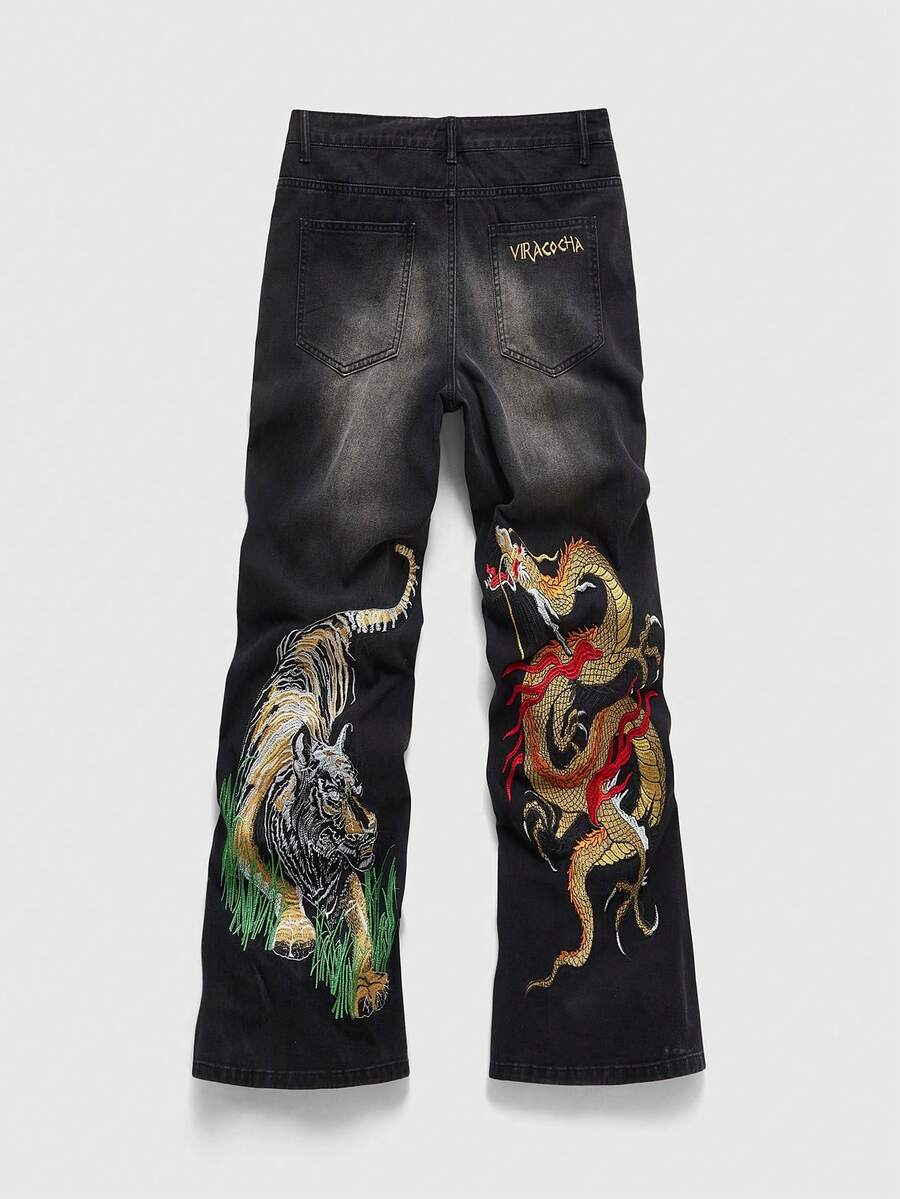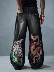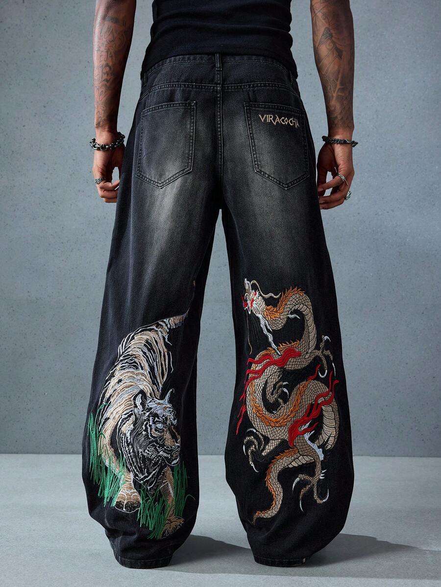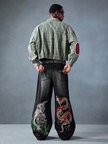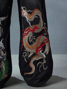 Street Life Jeans amples et décontractés avec poche brodée de dragon chinois pour hommes