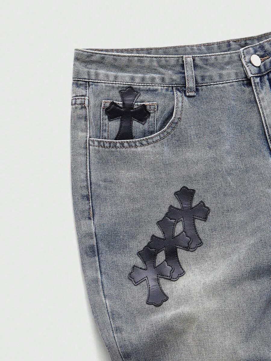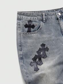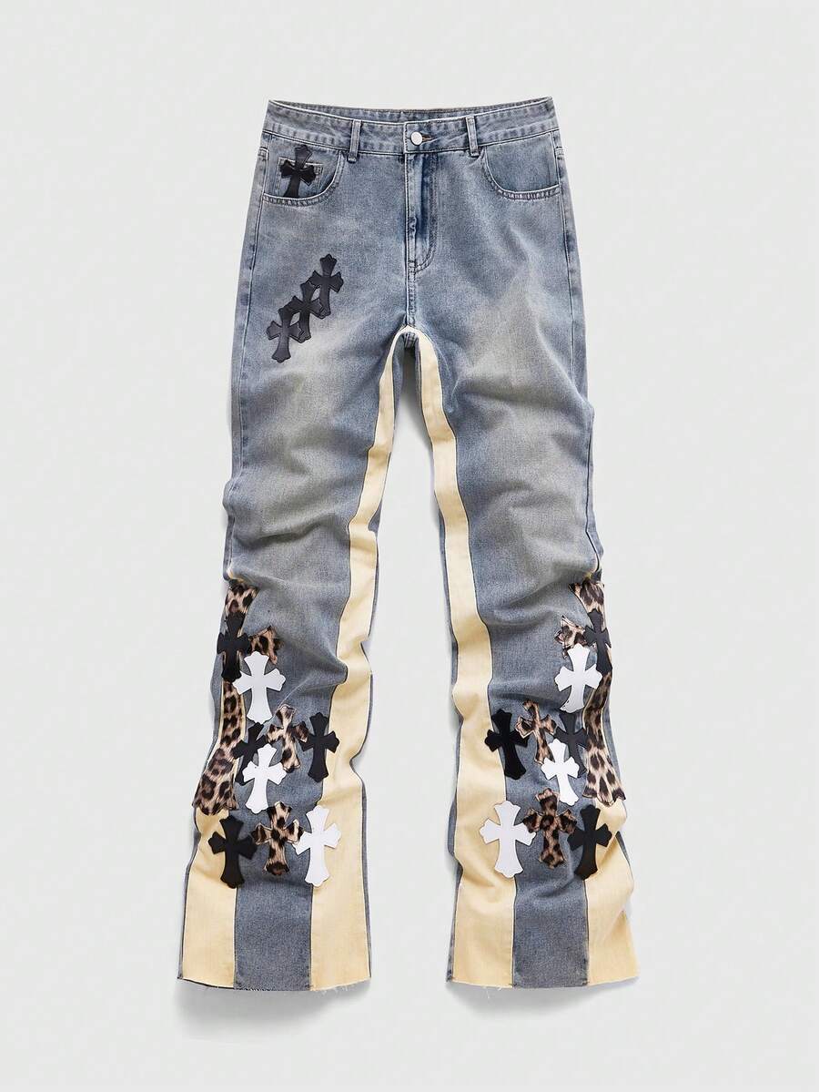 Street Life Jeans pour hommes avec patchwork contrasté et application de croix