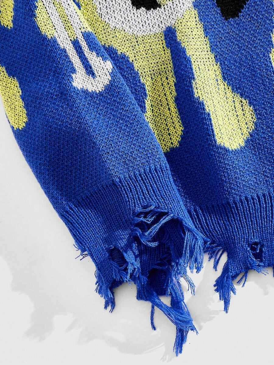 Street Life Sweater col rond homme avec motif flammé et crâne tricoté