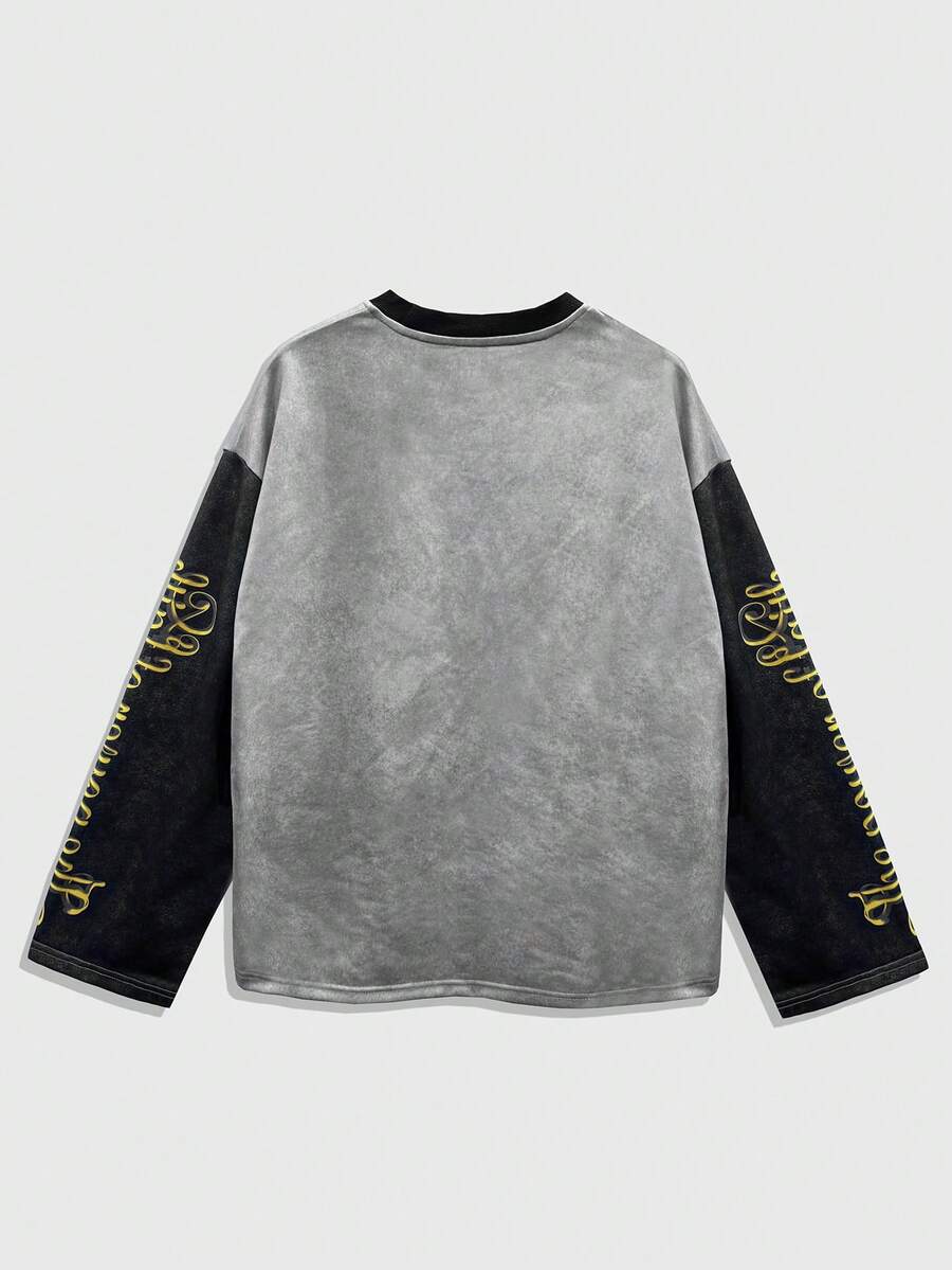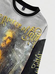 Street Life Sweat-shirt col rond à manches longues avec épaules tombantes, mode décontractée polyvalente avec motif créatif pour hommes