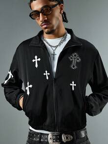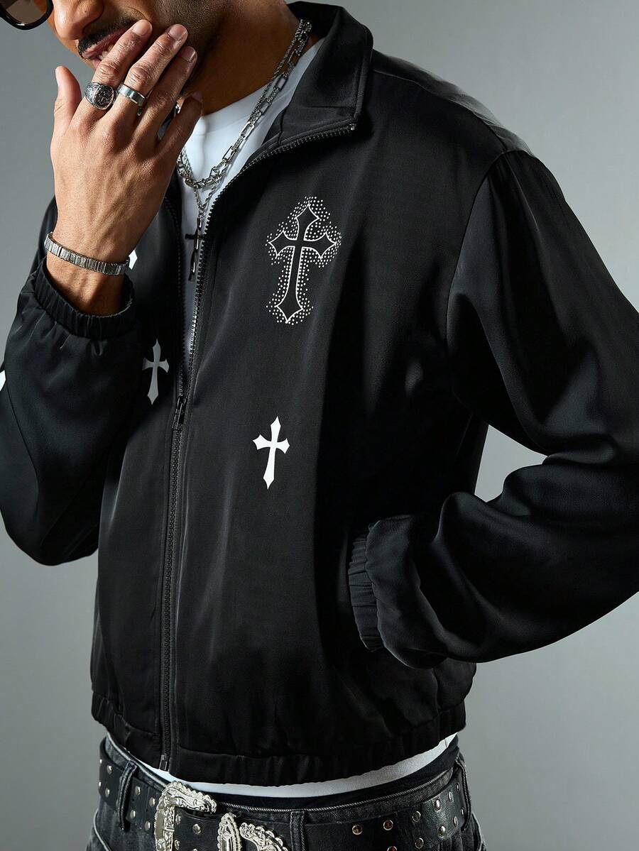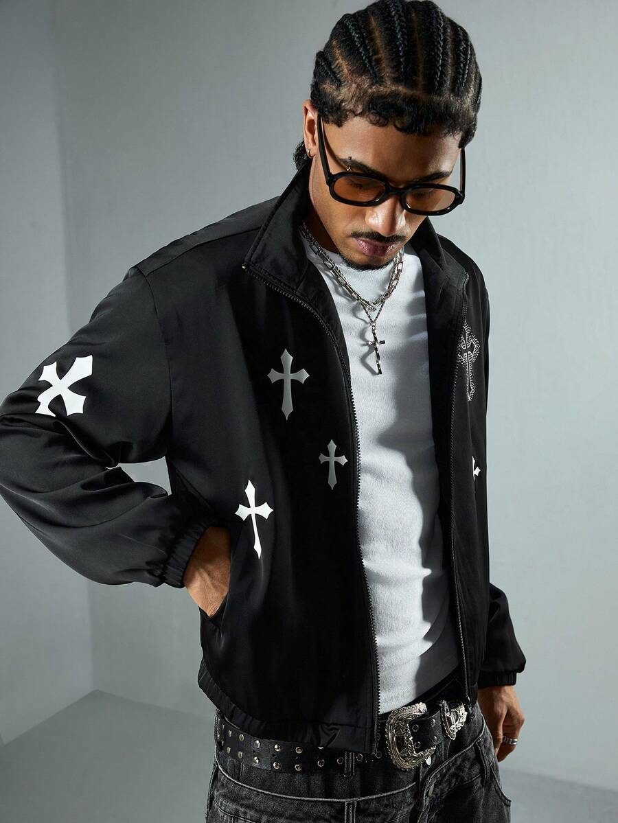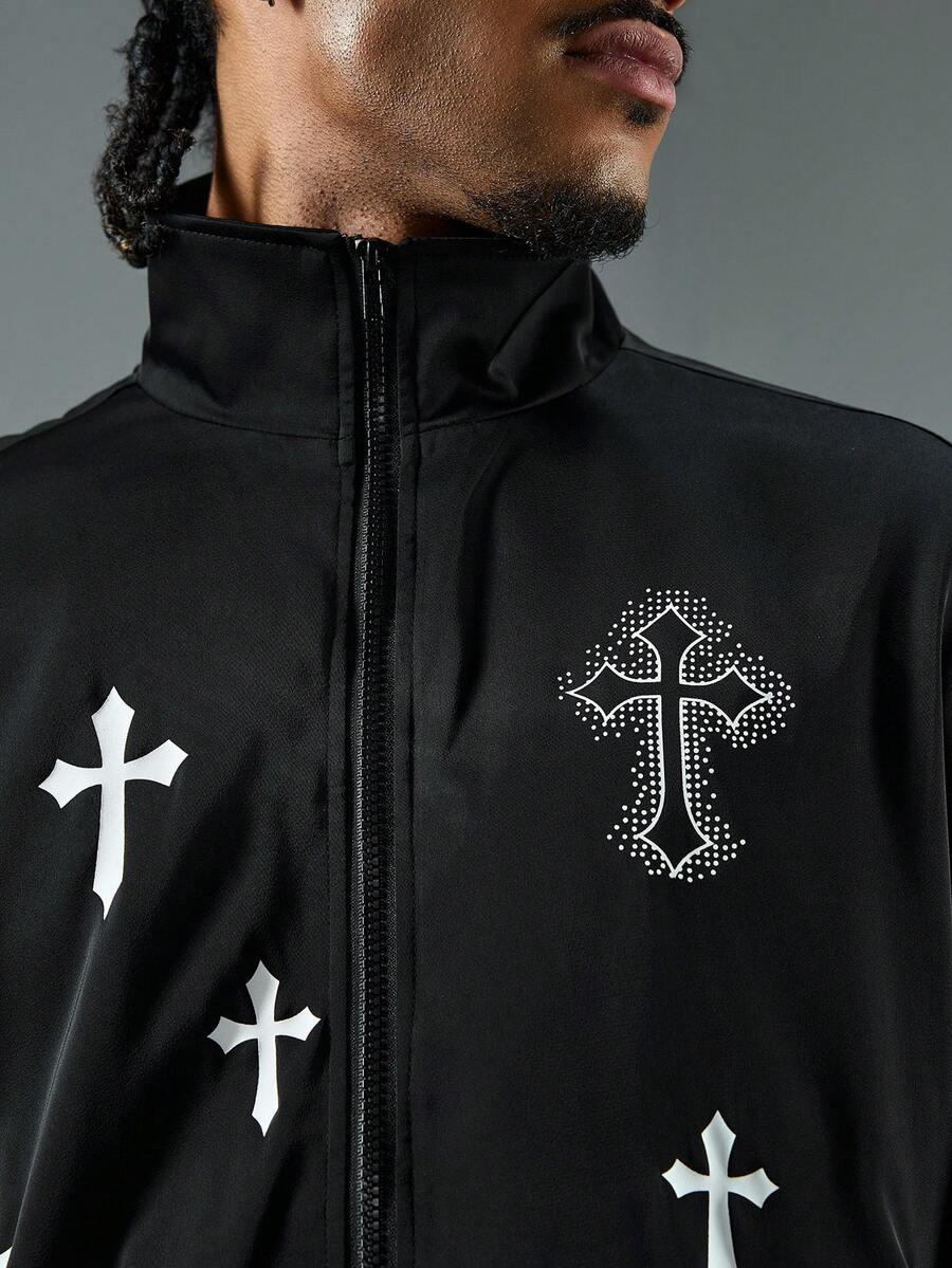 Street Life Veste zippée à col montant avec imprimé croix, manches longues pour homme
