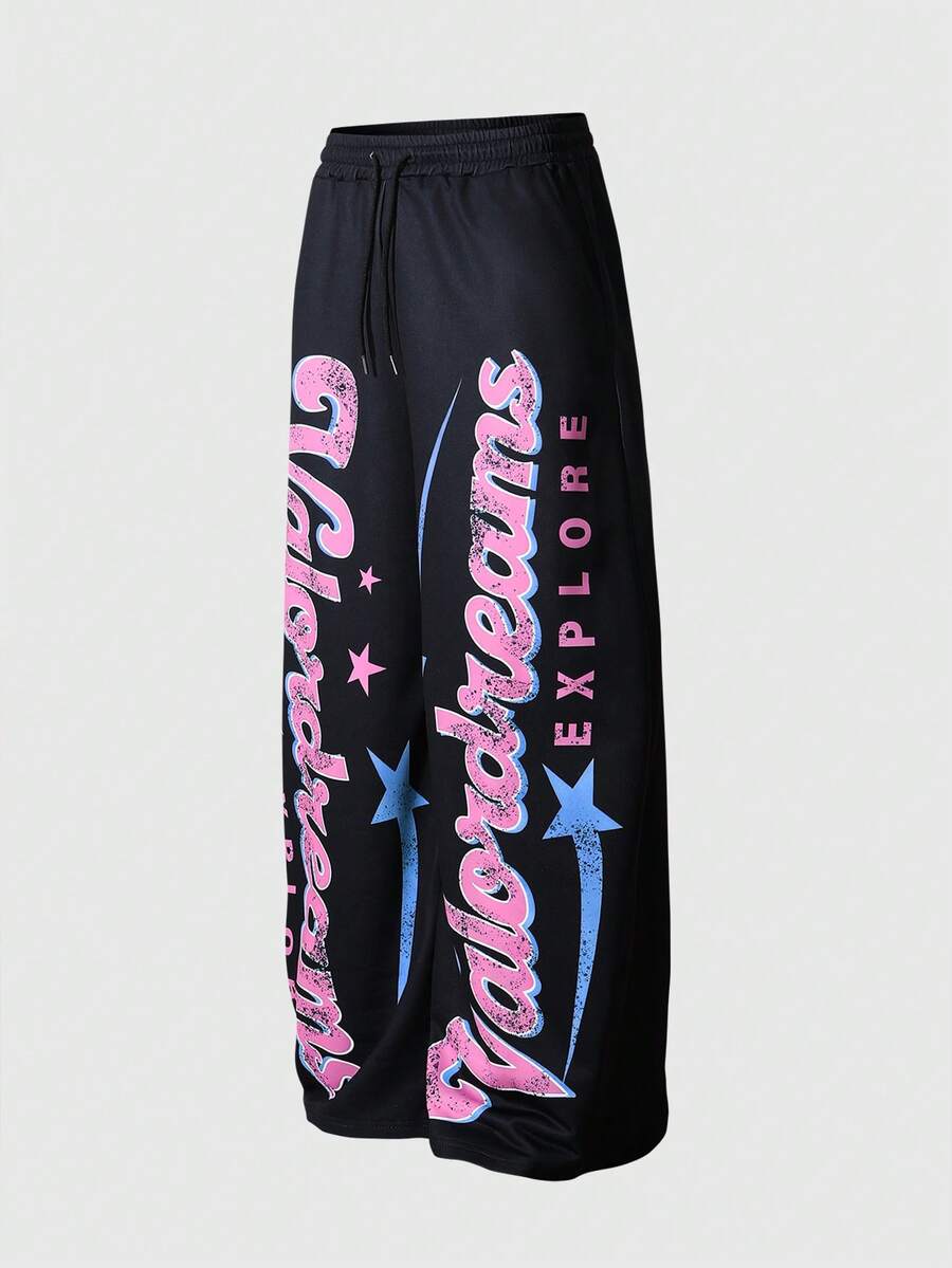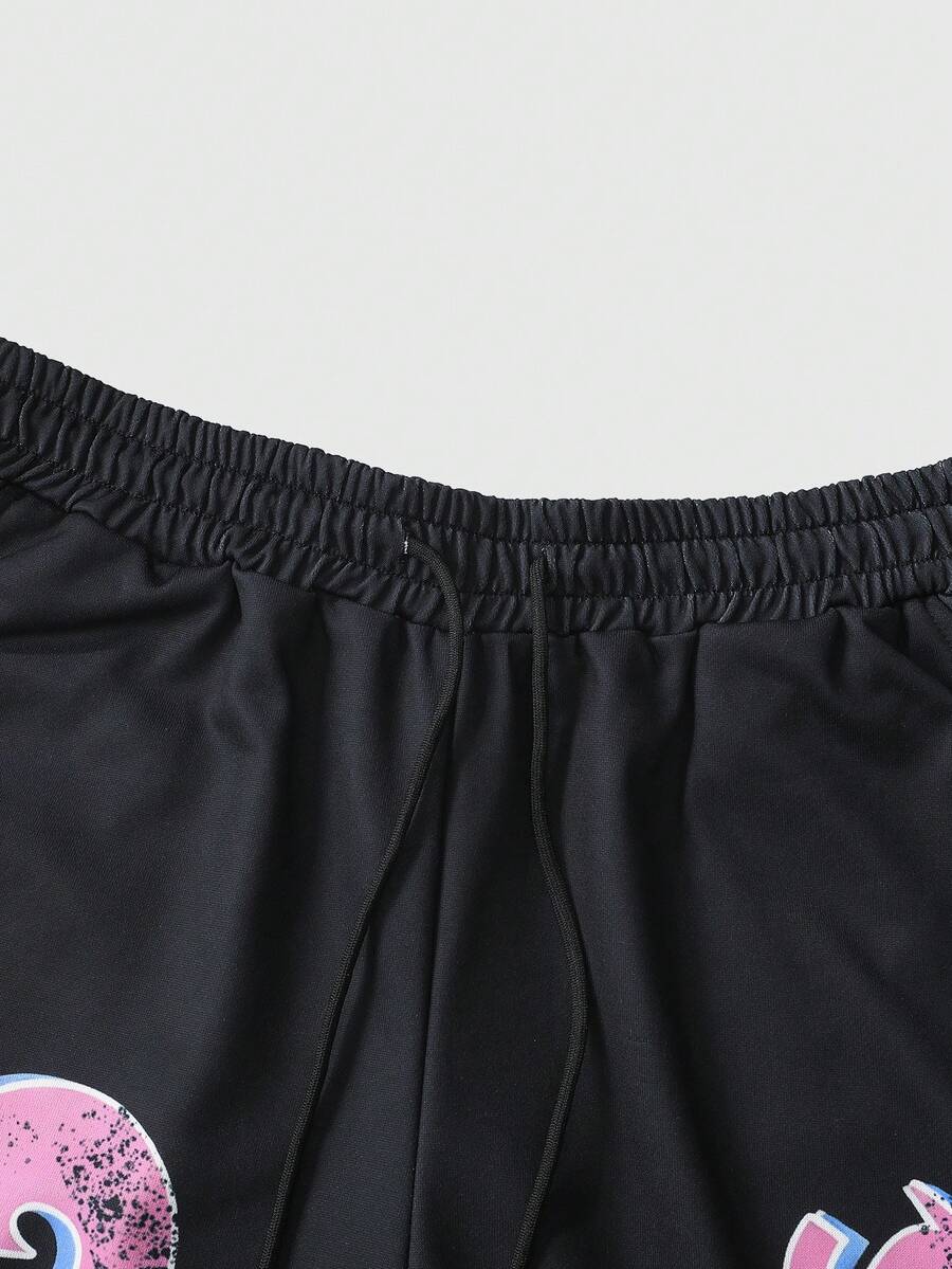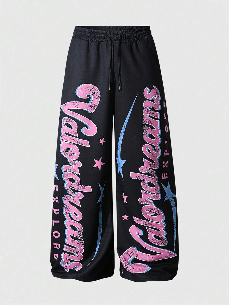 Street Life Pantalon de survêtement style sombre pour hommes ! Imprimé flamme + coupe large, créant une ambiance mode rebelle