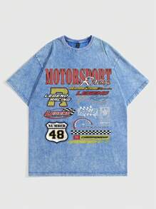 Street Life T-shirt imprimé de lettres effet denim pour hommes, école