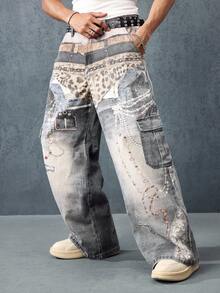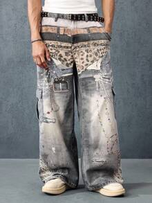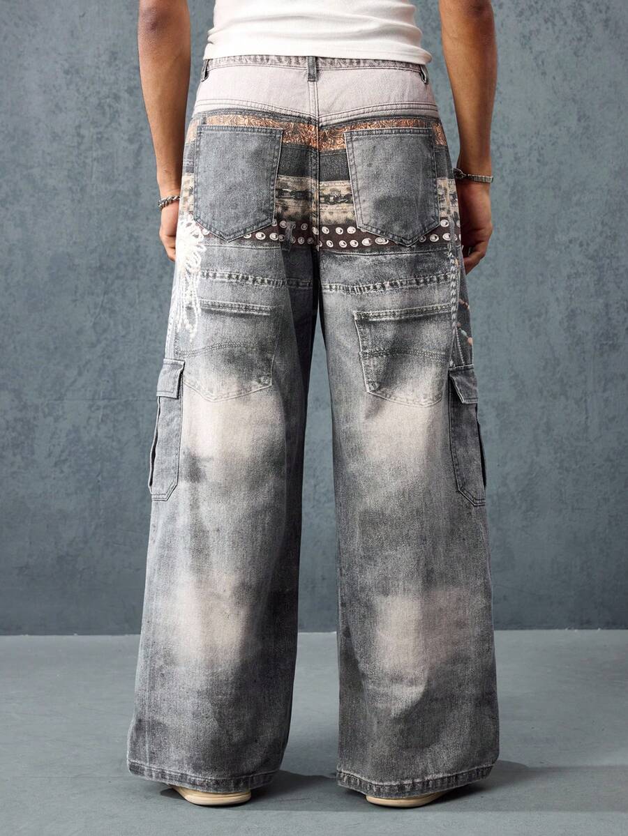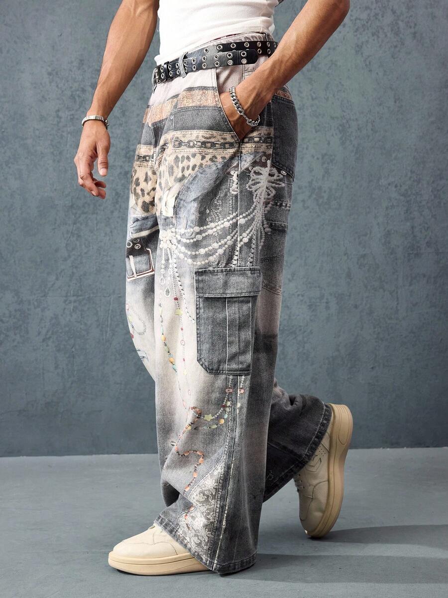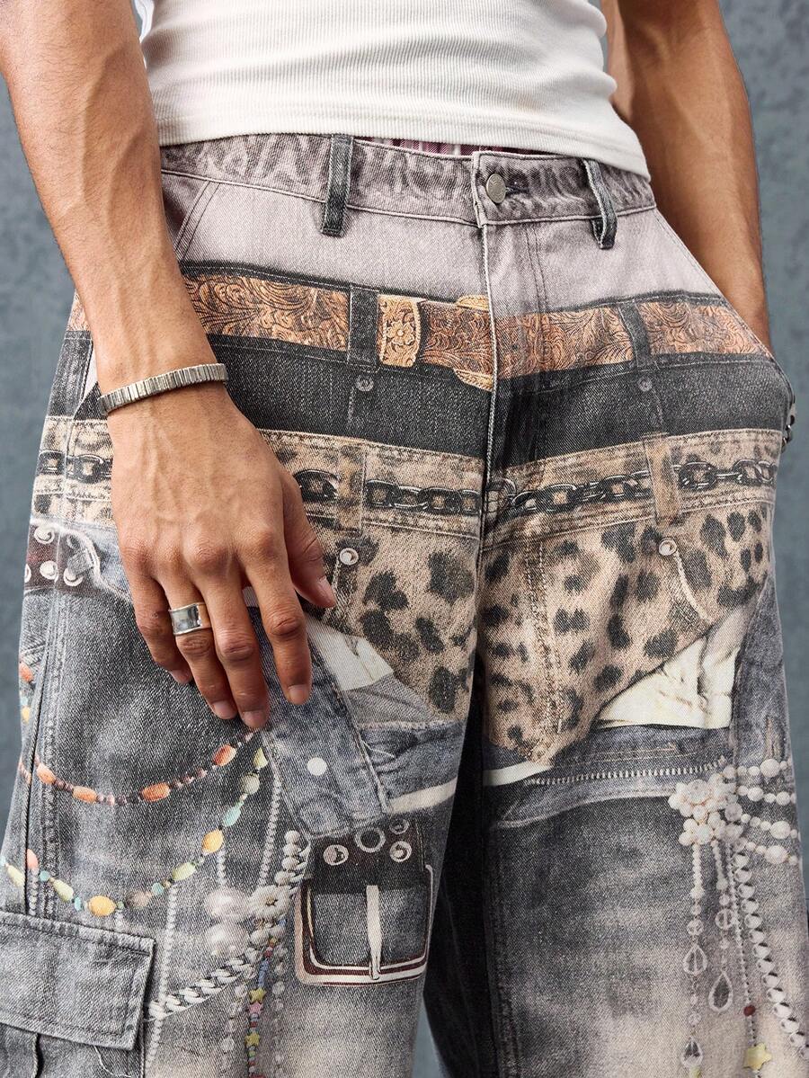 Street Life Jeans en denim pour hommes avec effet visuel imprimé, ceintures multiples