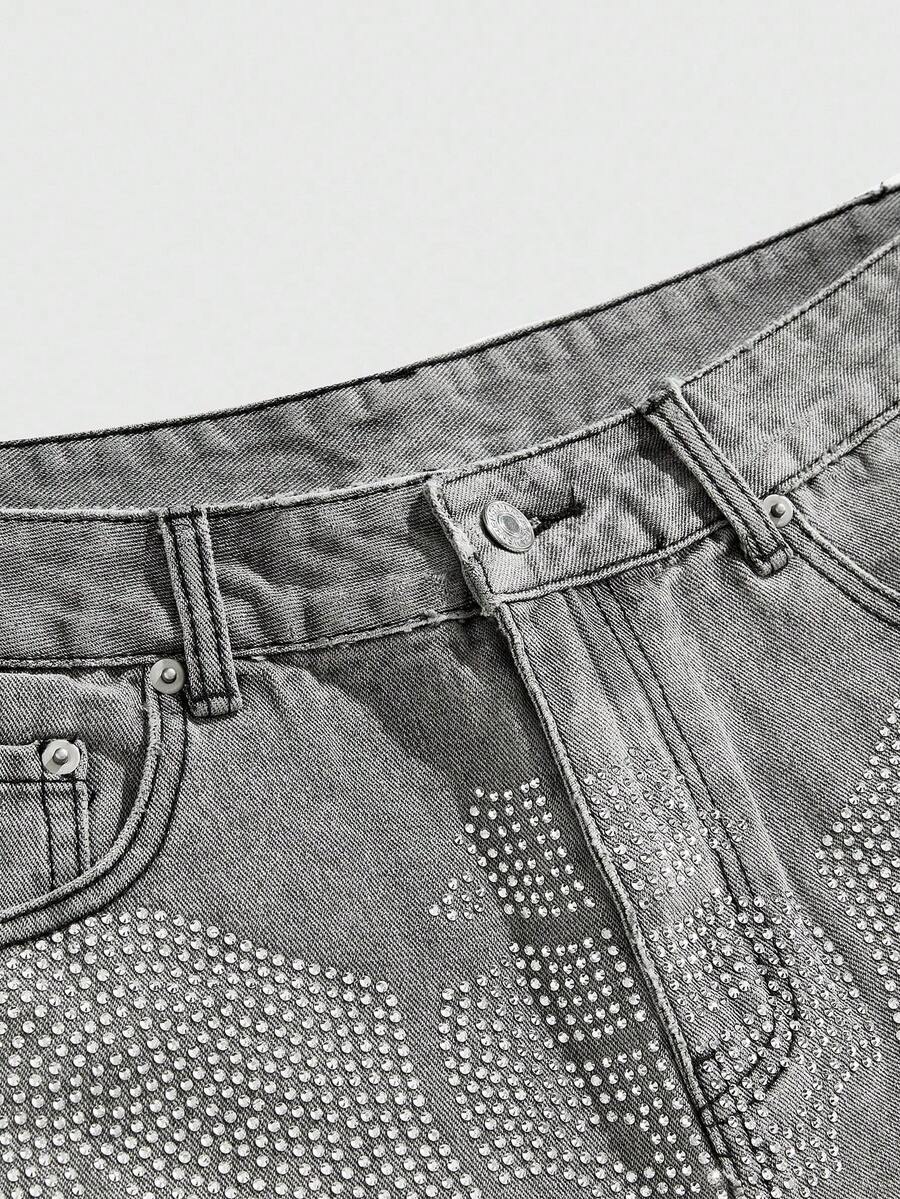Street Life Short en jean pour hommes avec poches et motif en diamant scintillant