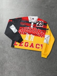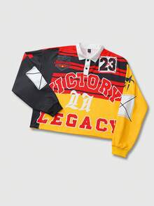 Street Life Sweat-shirt polo à manches longues avec imprimé blocs de couleurs pour hommes