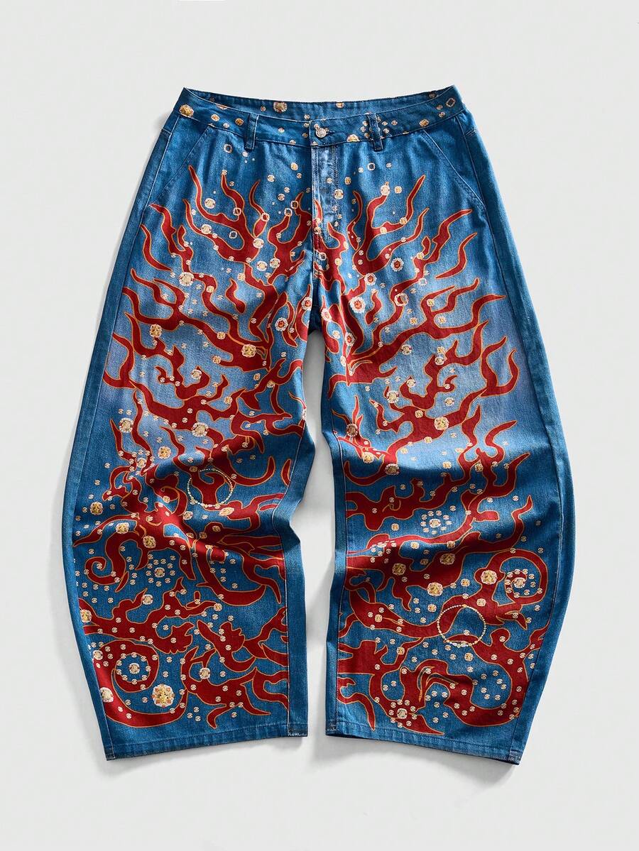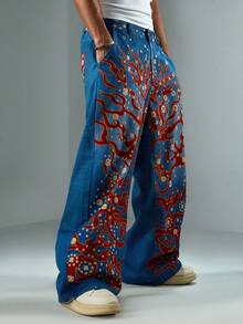 Street Life Jeans à jambes cintrées avec imprimé numérique pour hommes