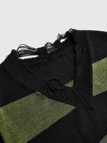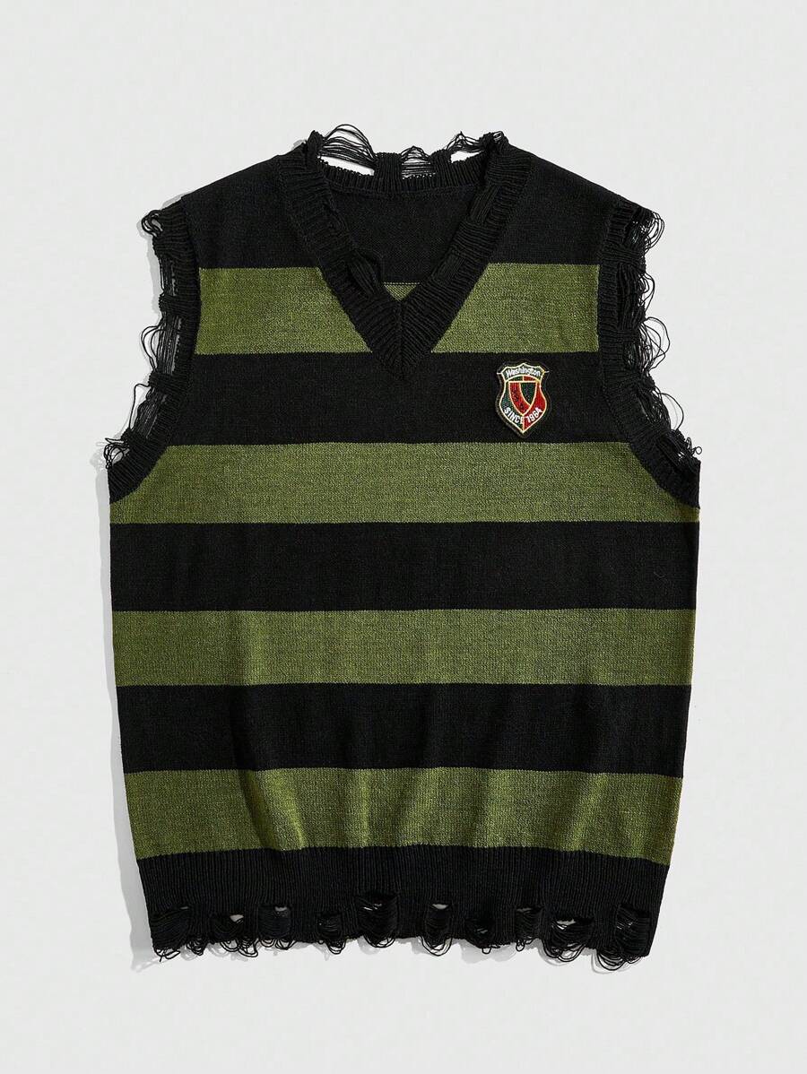 Street Life Gilet tricoté à rayures contrastées délavé pour homme