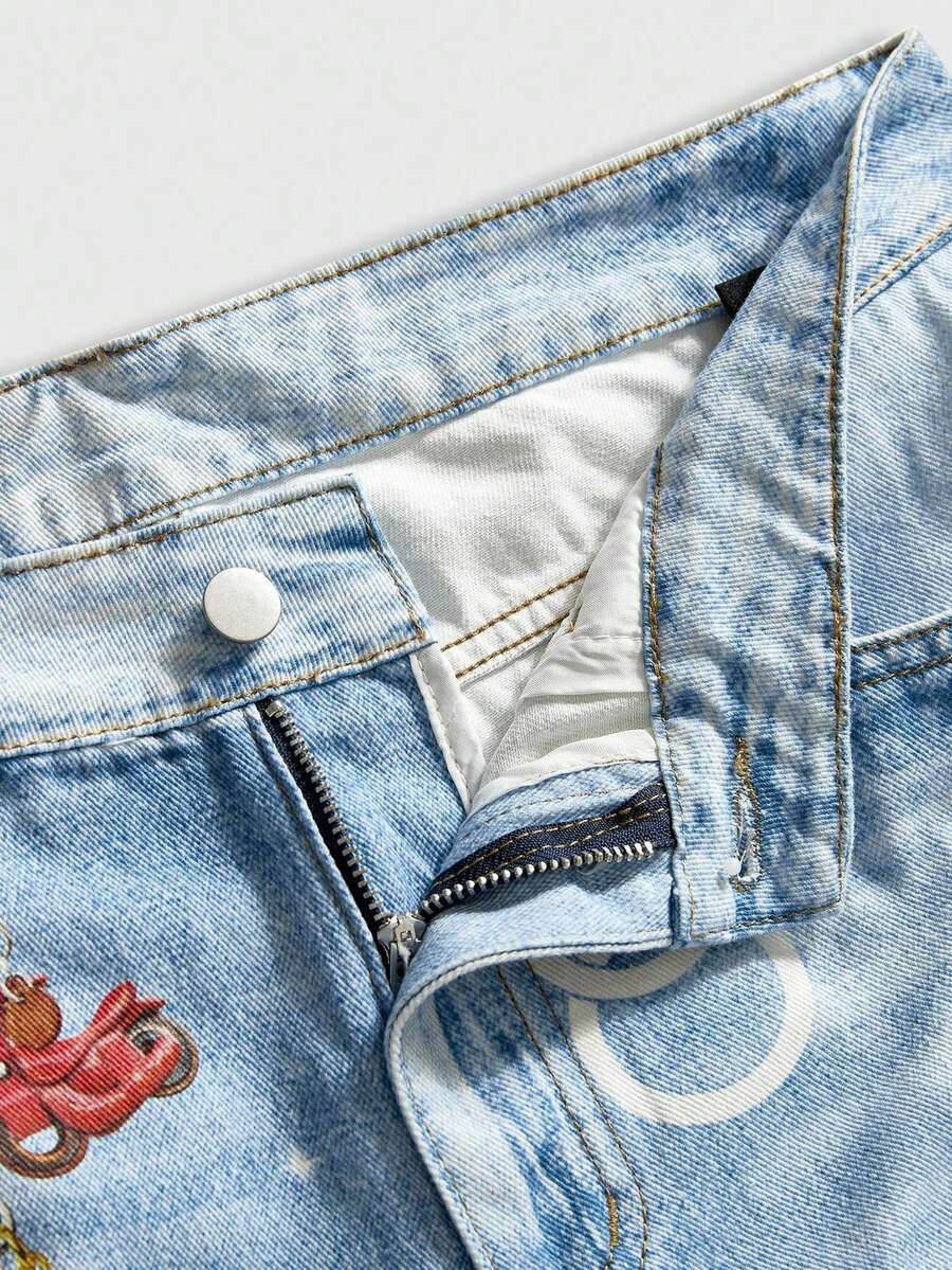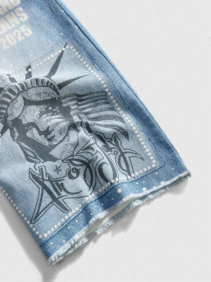 Street Life Jeans en denim délavé avec imprimé lettres casual pour hommes, été