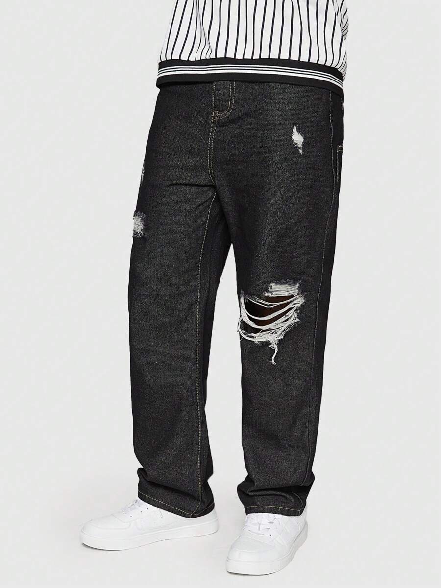 Street Life Jeans en denim décontractés et amples avec salopette pour hommes