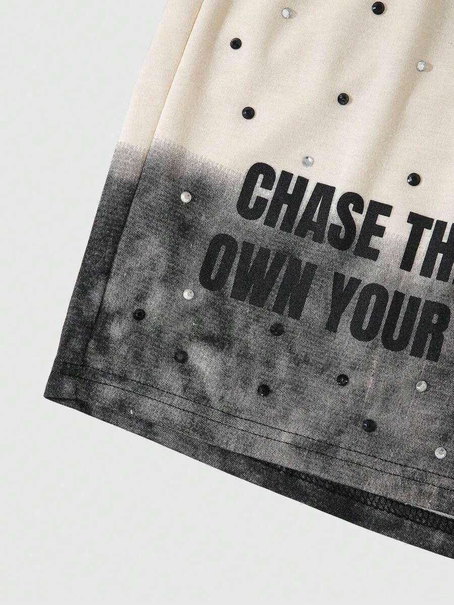 Street Life Shorts amples pour hommes avec impression de slogan et strass délavés