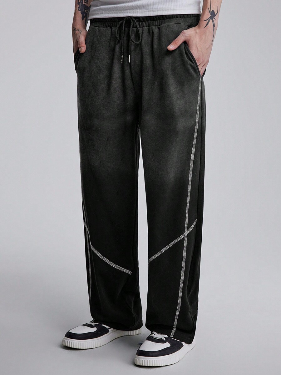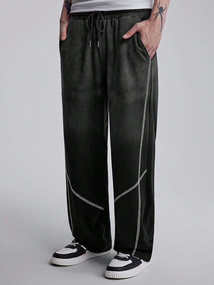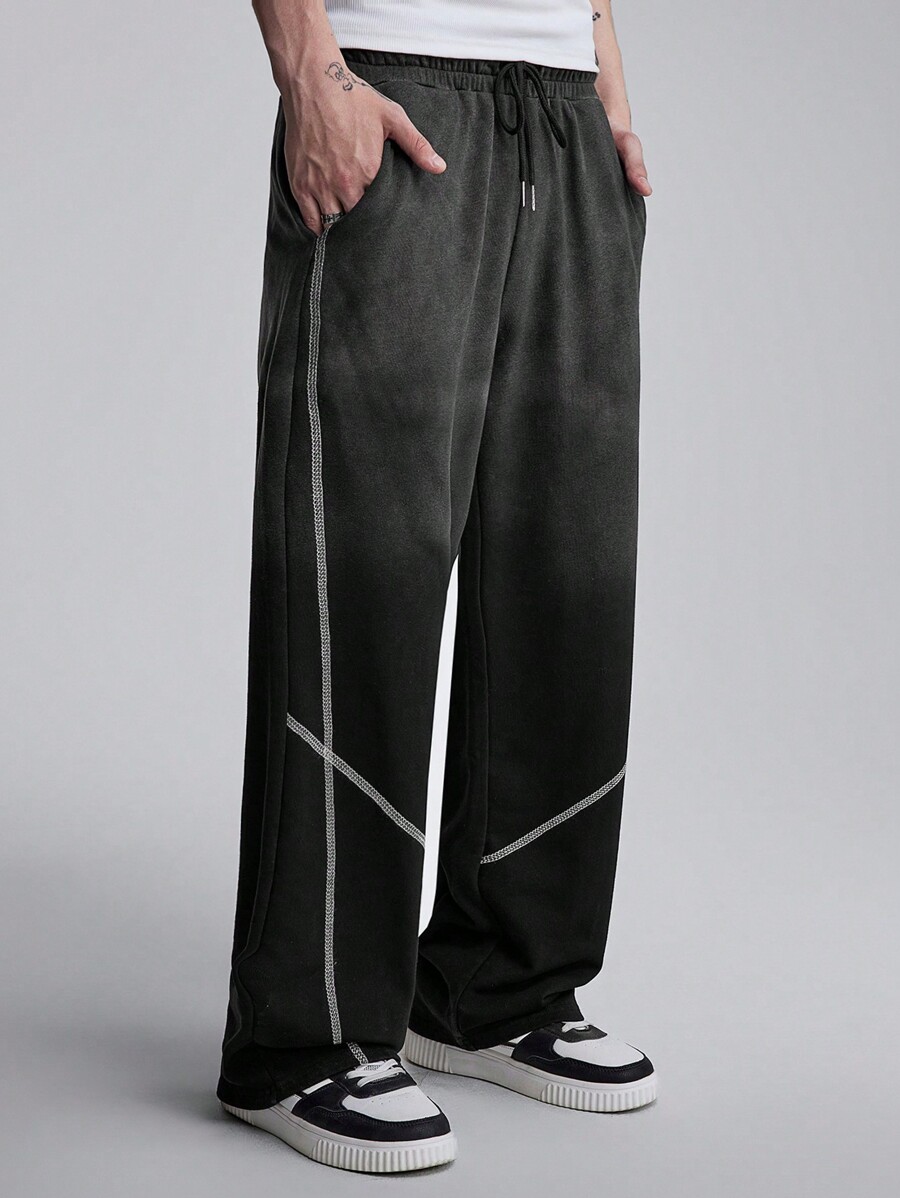 Street Life Pantalon de survêtement ample à taille cordon de serrage et jambe droite pour hommes