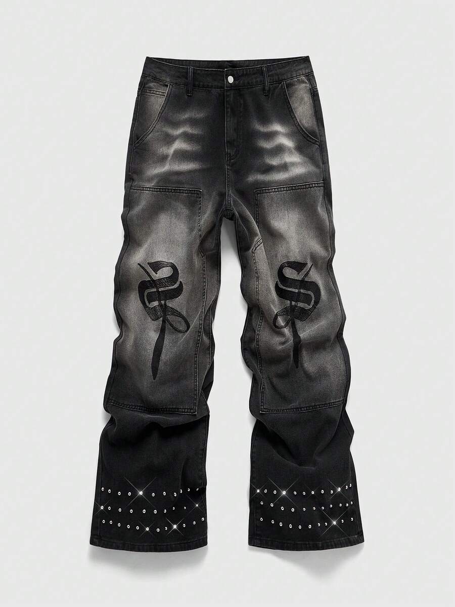 Street Life Jeans en denim brodé pour hommes, convient pour un port quotidien, printemps/été