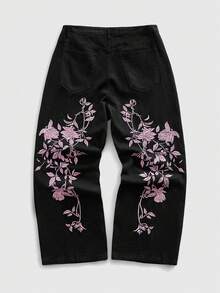 Street Life Jeans en denim à motif floral et couteau incurvé pour hommes