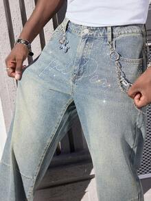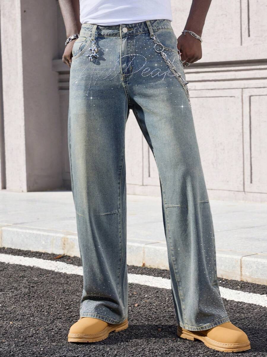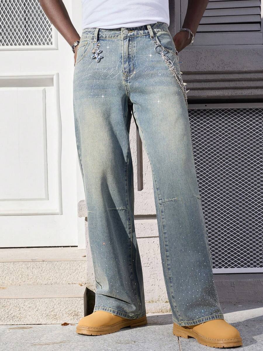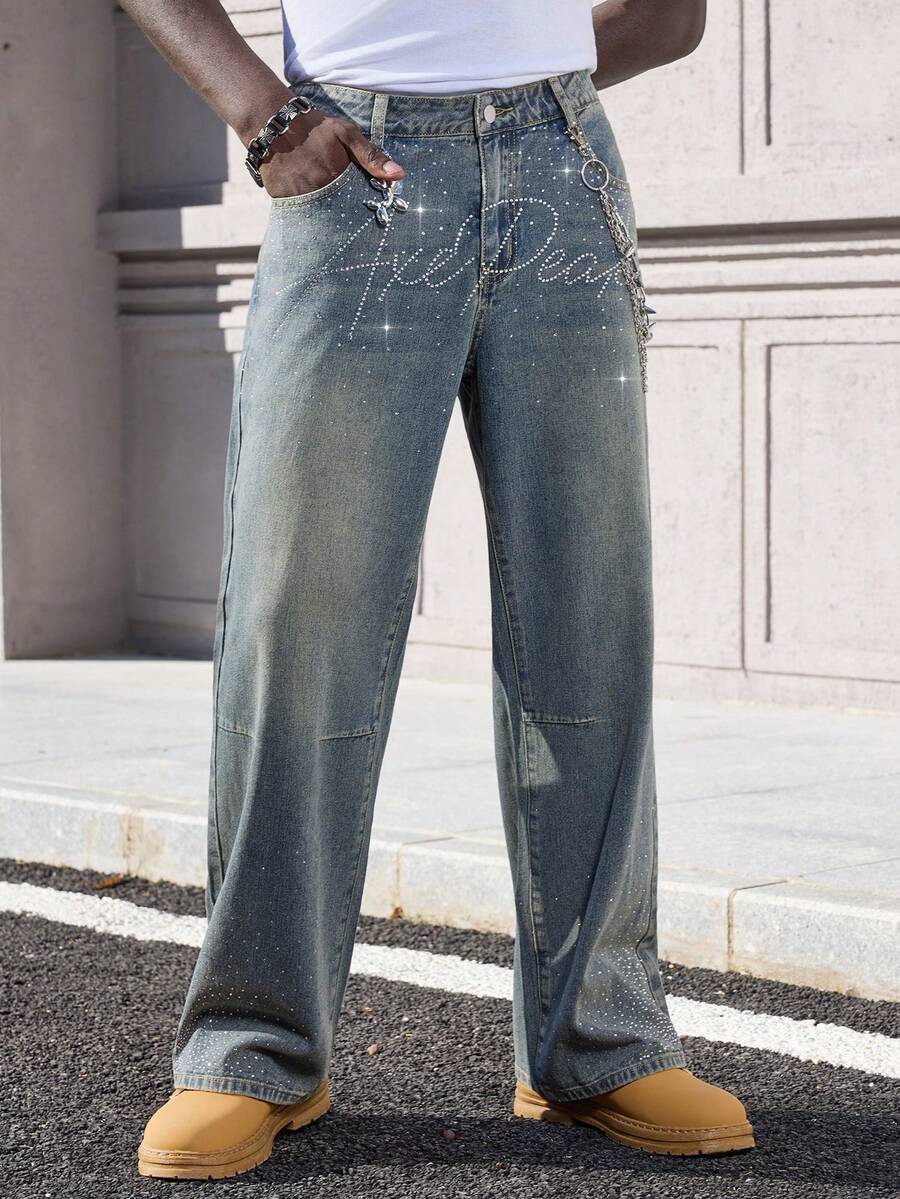 Street Life Jeans amples ornés de strass pour hommes avec poches