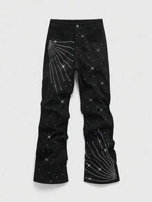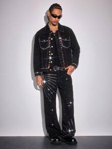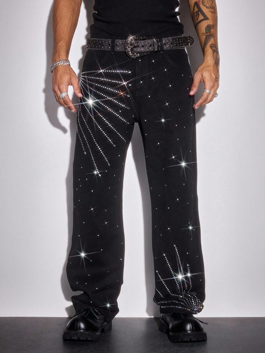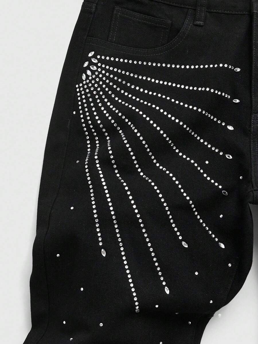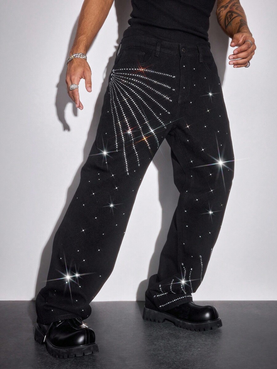 Street Life Jeans évasés mode de rue pour hommes, ornés de strass, style grunge