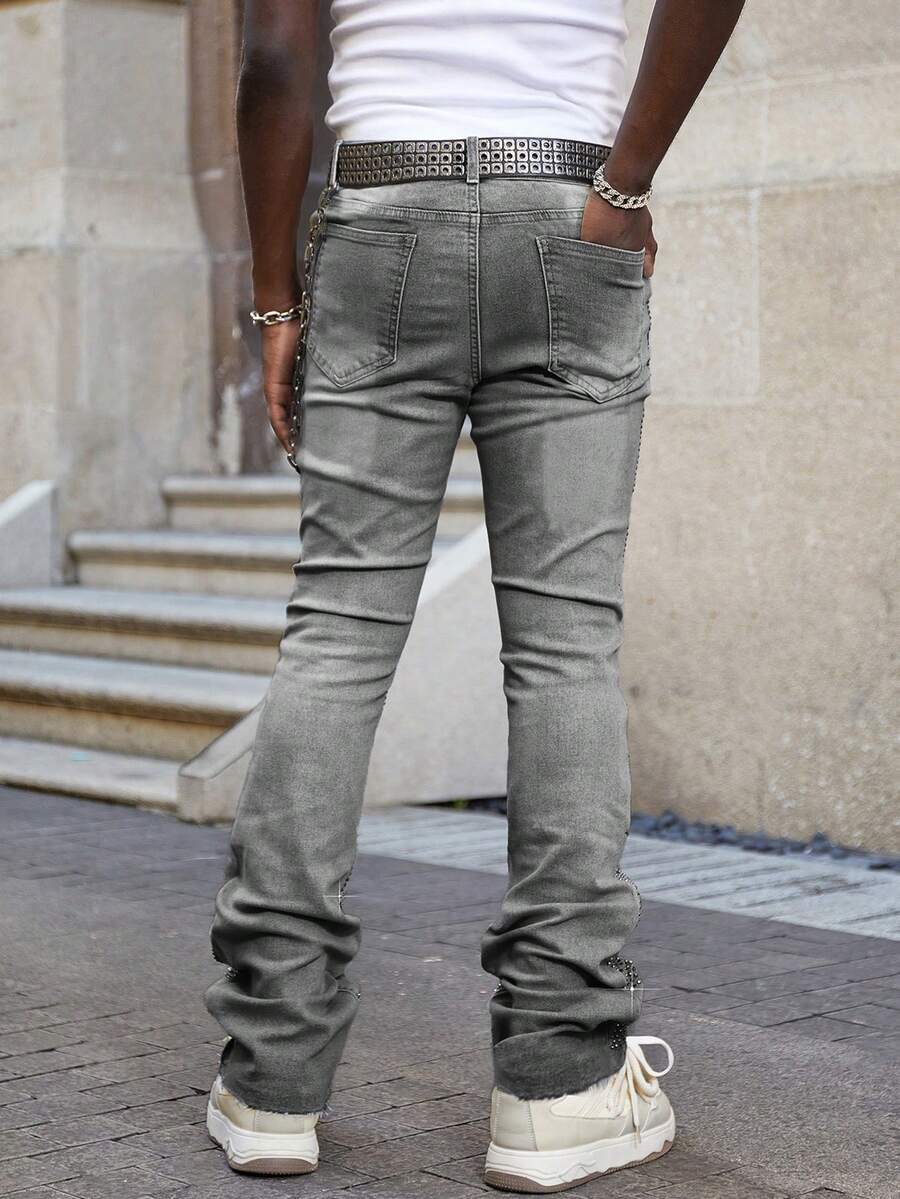 Street Life Jeans en denim vintage à la mode avec diamants scintillants superposés pour hommes