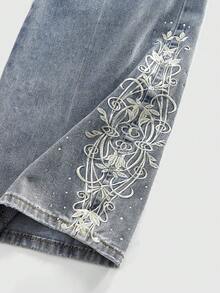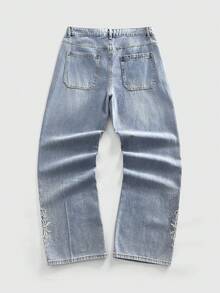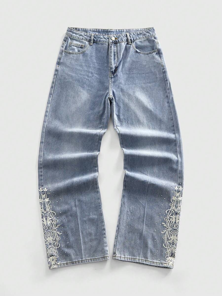 Street Life Jeans amples et décontractés avec poche à broderie florale pour hommes