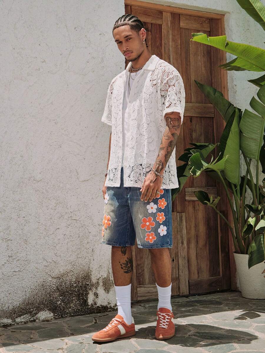 Street Life Short casual ample à mi-cuisse pour homme avec imprimé floral et poche plaquée