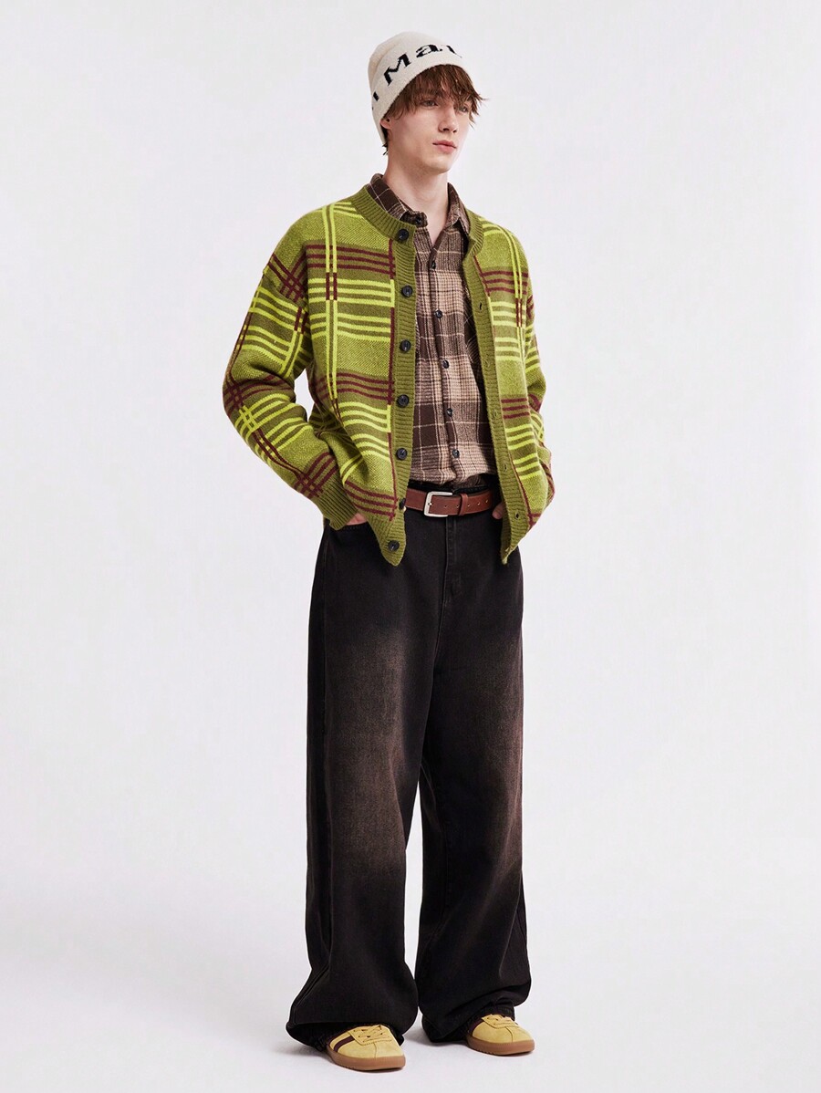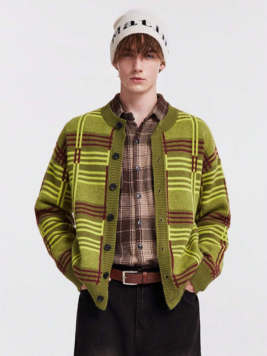 Street Life Cardigan casual à manches longues avec boutons, imprimé de rayures pour hommes de style grand-père