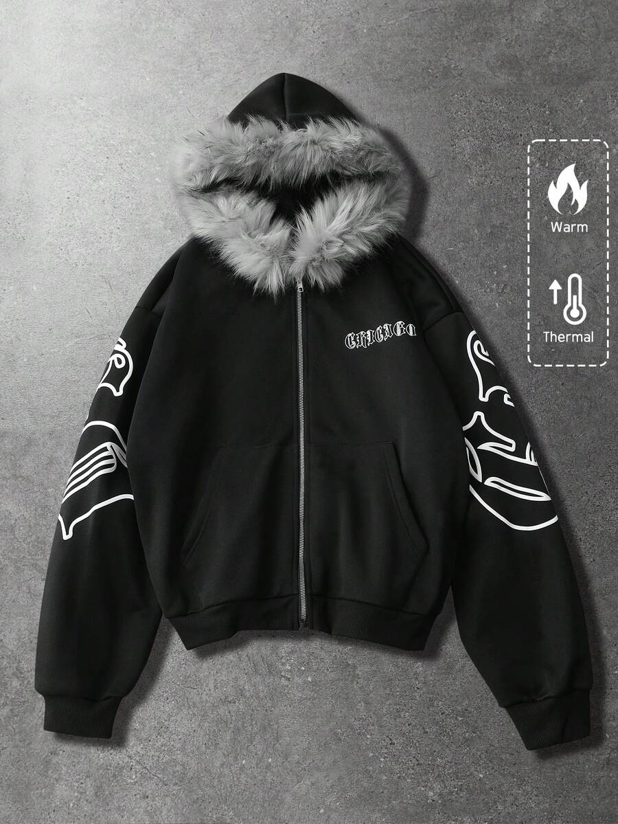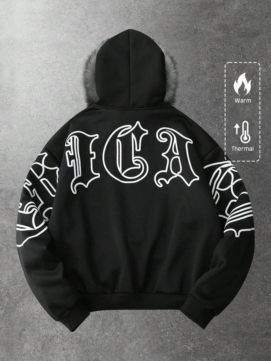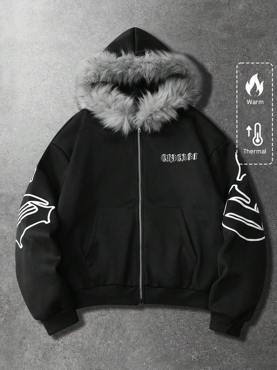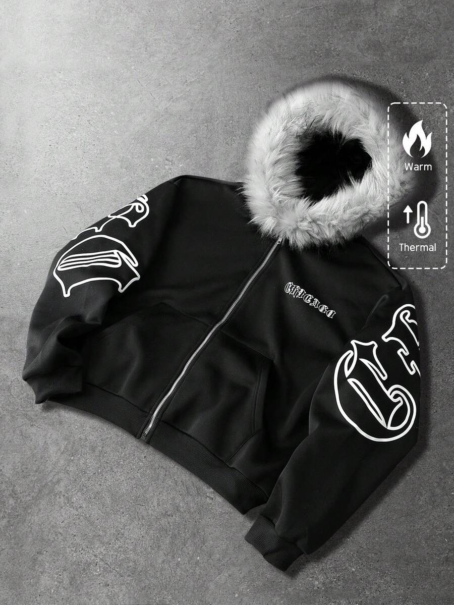 Street Life sweat-shirt à capuche doublé de polaire avec col en fourrure, imprimé graphique pour hommes, automne/hiver