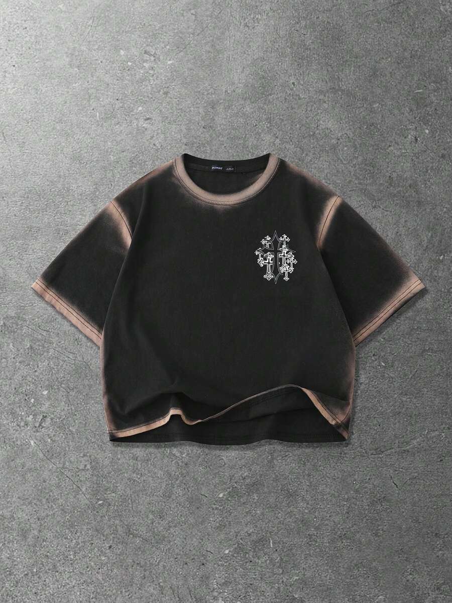 Street Life T-shirt ample à manches courtes et épaules tombantes peint à la main pour hommes