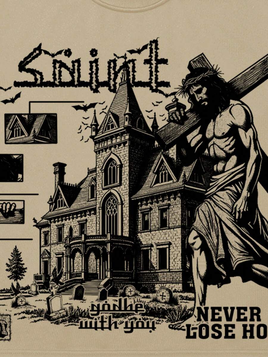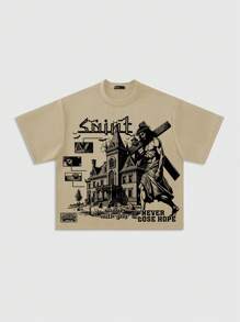 Street Life T-shirt oversize à imprimé graphique de style court, style de rue rétro pour hommes