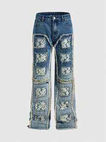 Street Life Jeans amples, lavés, baggy, avec appliques de dentelle et broderie pour hommes