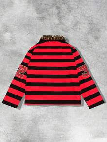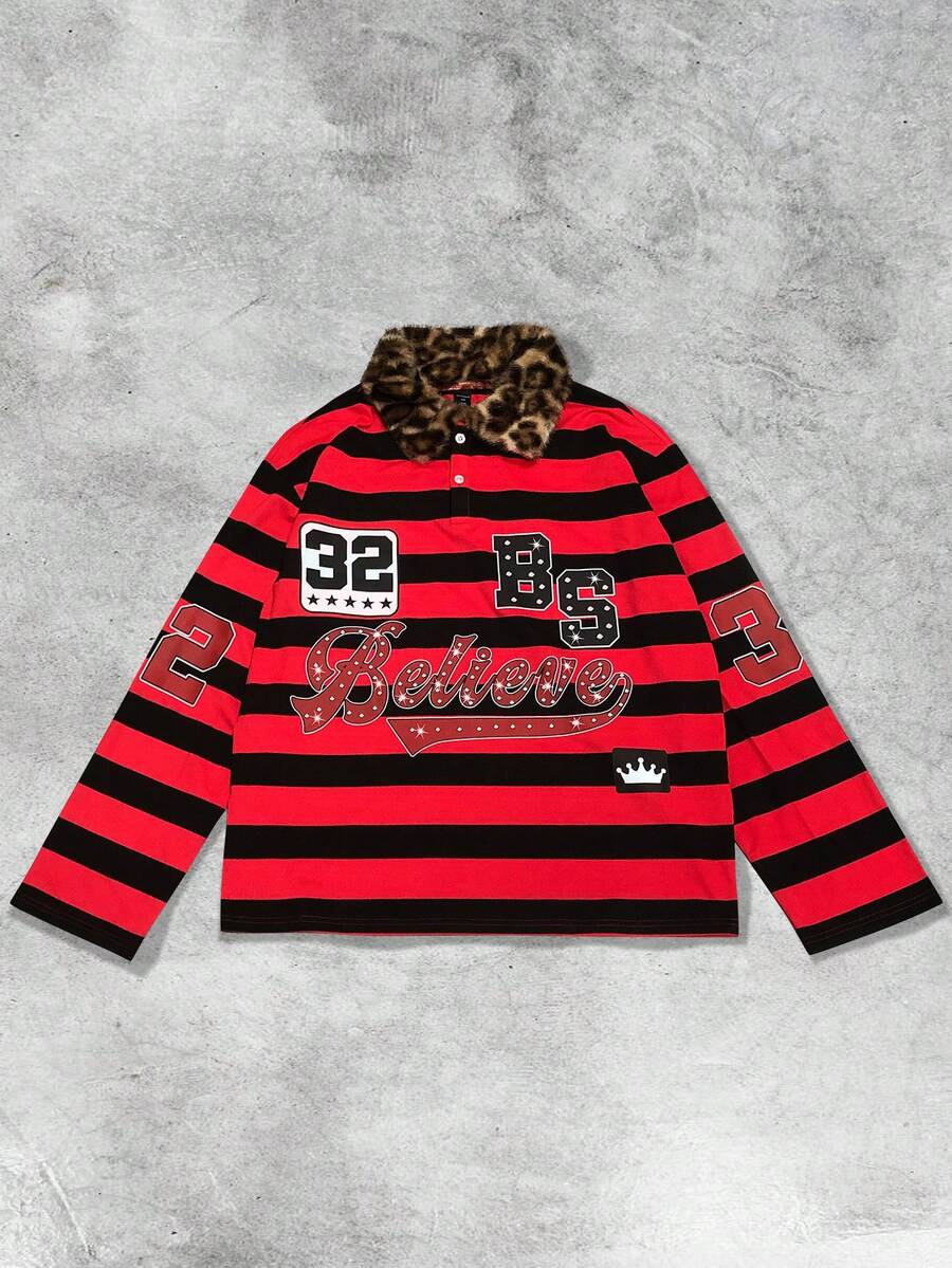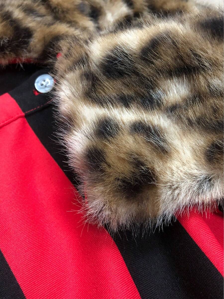 Street Life Chemise polo ample à rayures avec col en fourrure léopard pour hommes