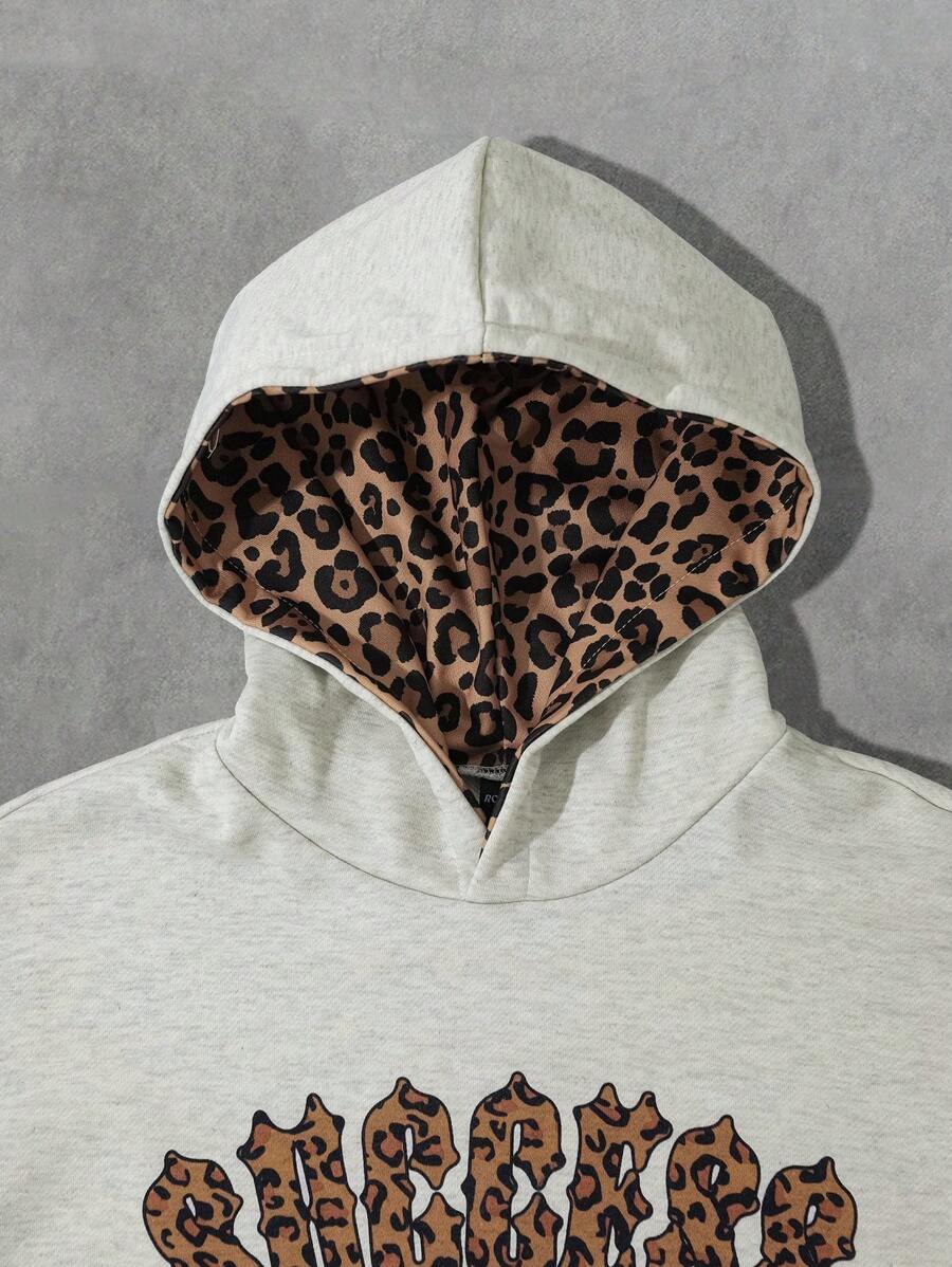 Street Life sweat-shirt à capuche oversize pour hommes avec imprimé léopard et patchwork