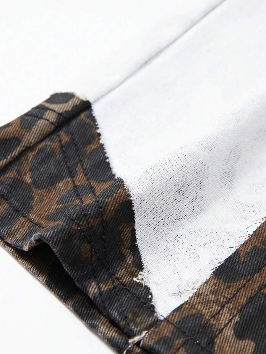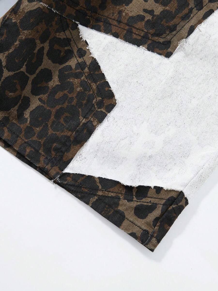 Street Life Short en jean ample avec motif d'étoiles à imprimé léopard pour hommes