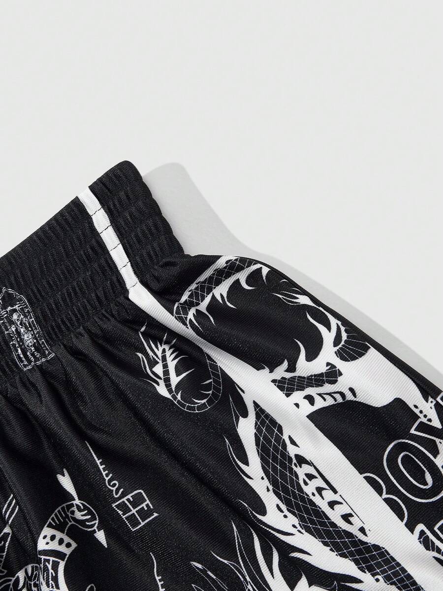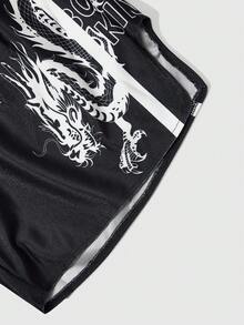 Prep Short de boxe ample à taille élastique avec imprimé gothique lettres et dragon pour hommes, Halloween
