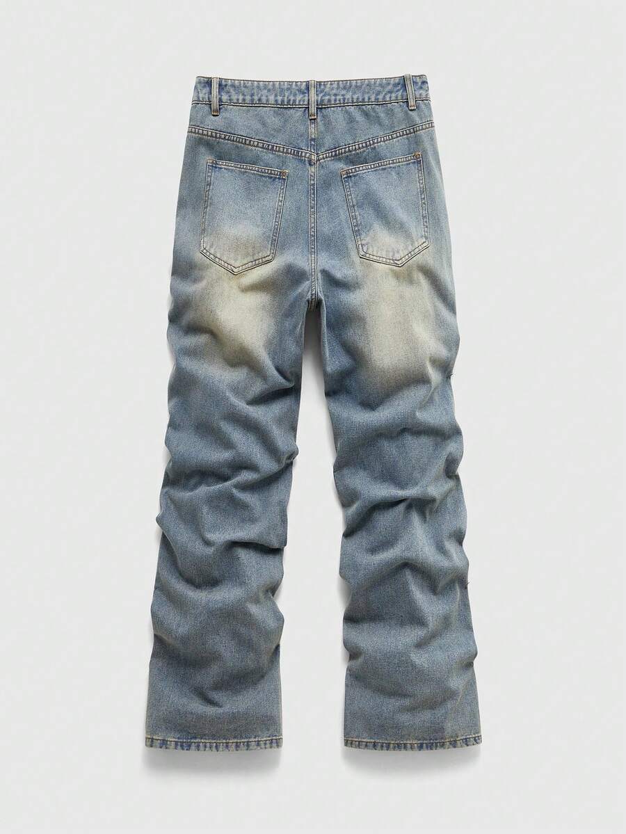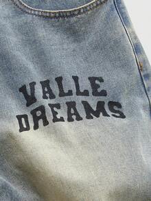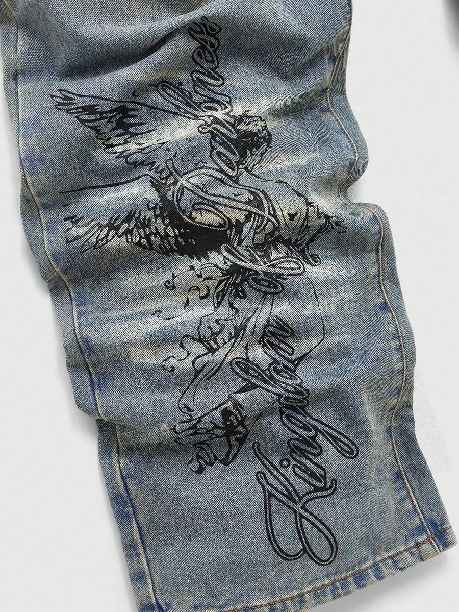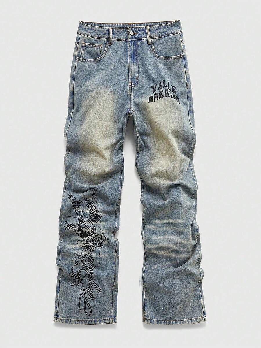 Street Life Jeans en denim délavé avec graphique lettrage pour hommes