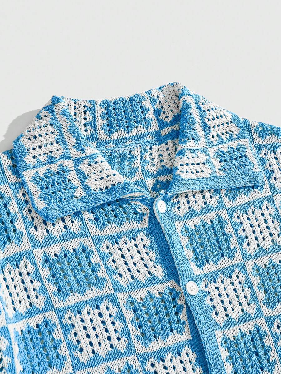 Street Life Chemise tricotée ample à épaules tombantes et ajourée pour homme, chemise de vacances
