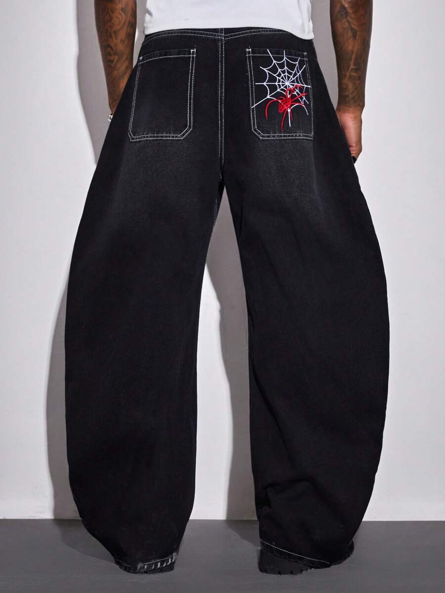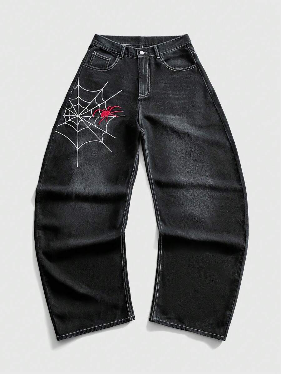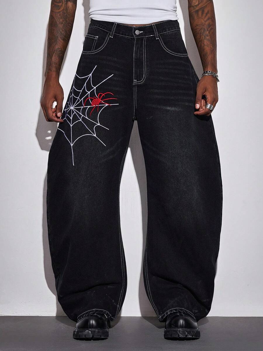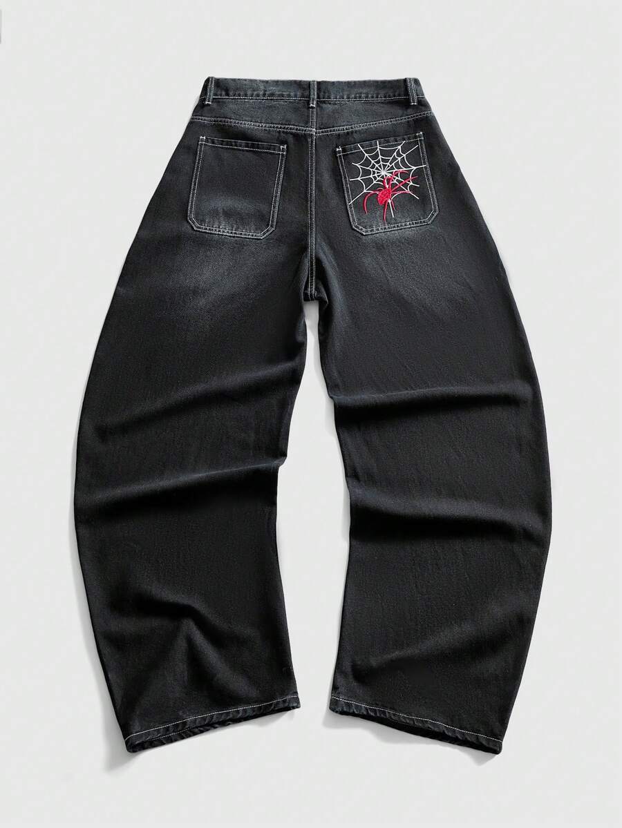 Street Life Jeans ample pour hommes avec motif de broderie de toile d'araignée