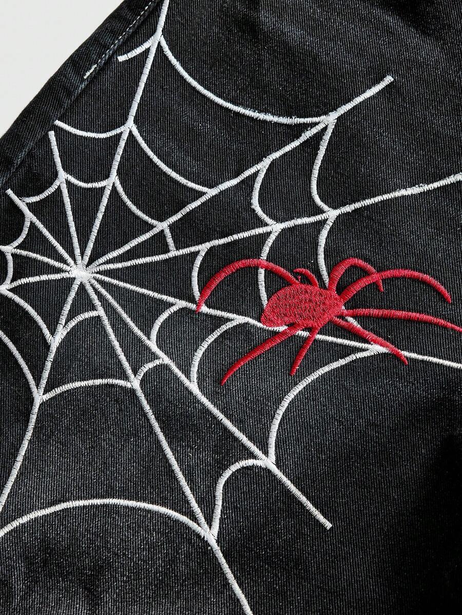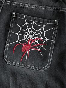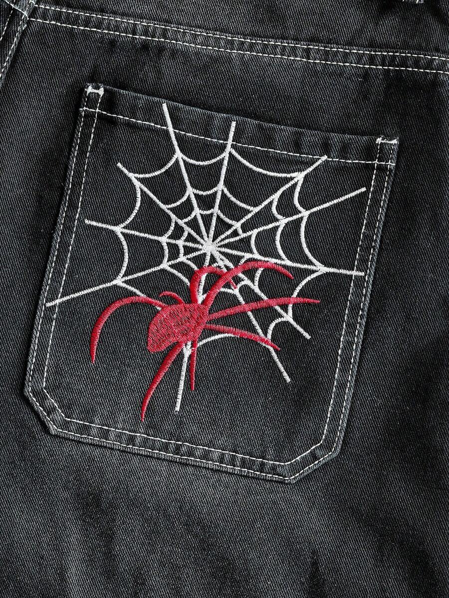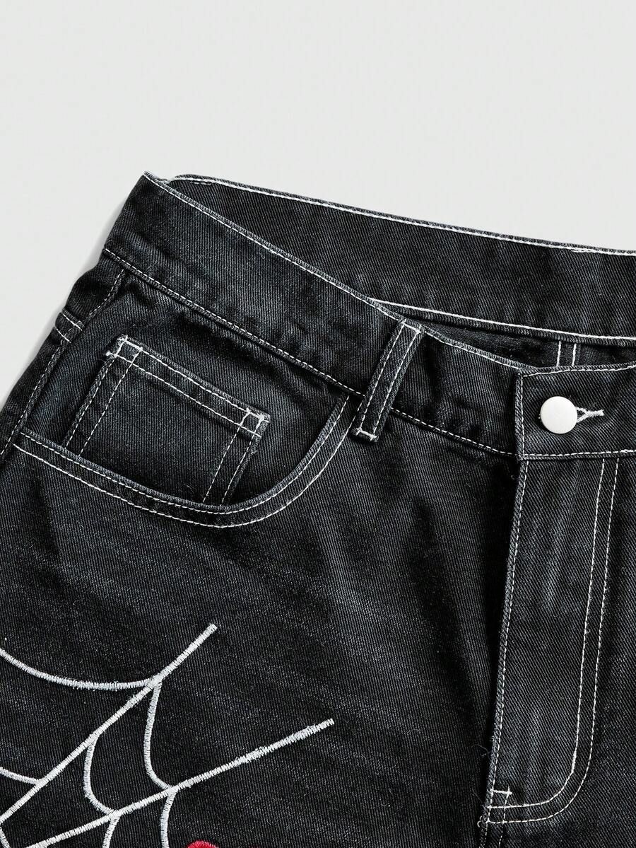 Street Life Jeans ample pour hommes avec motif de broderie de toile d'araignée
