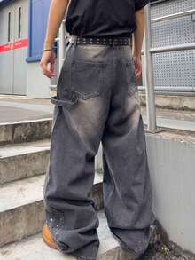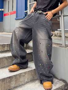 Street Life Jeans évasés à jambe ample avec ornements de strass pour hommes