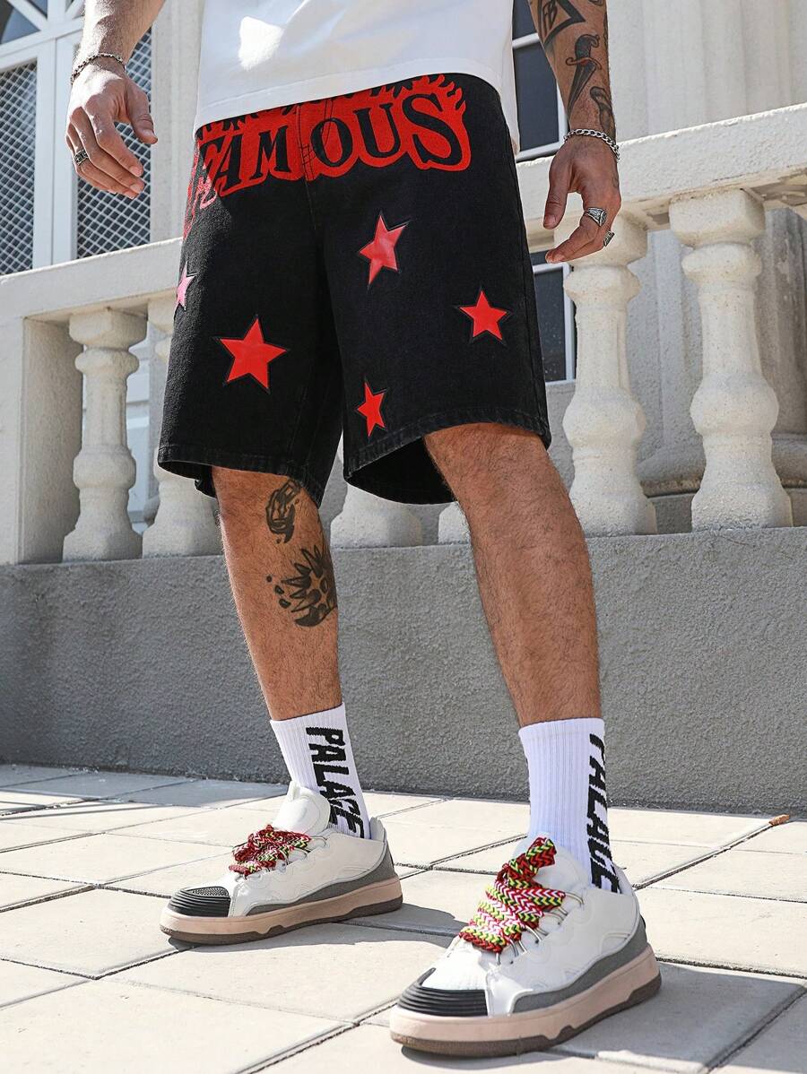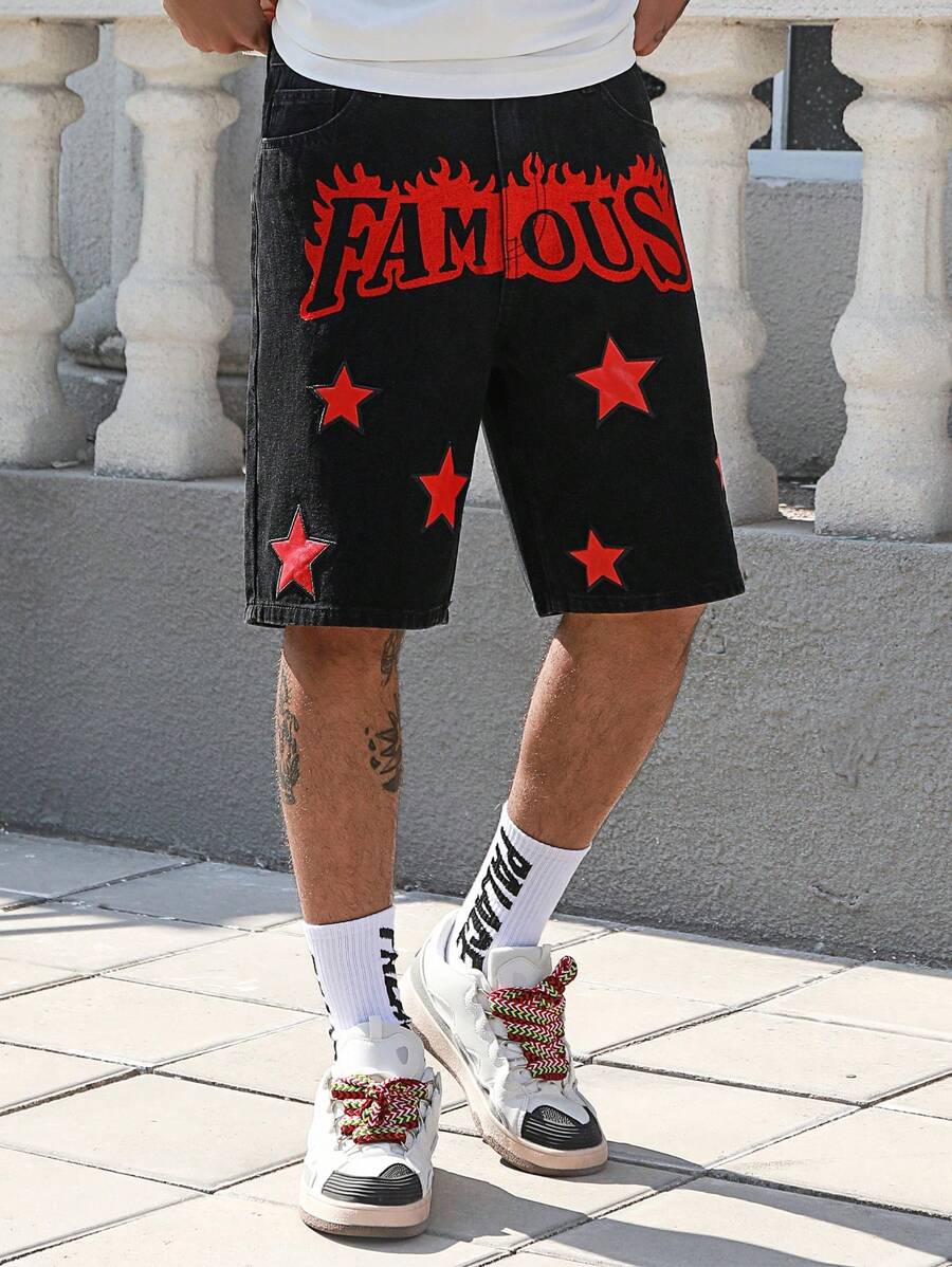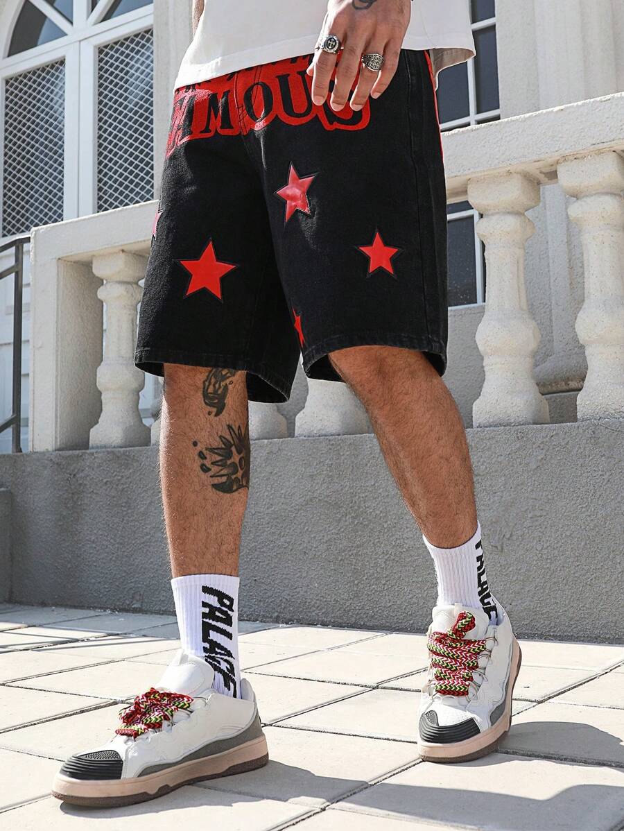 Street Life Short en denim ample avec broderie d'étoile et poches pour hommes